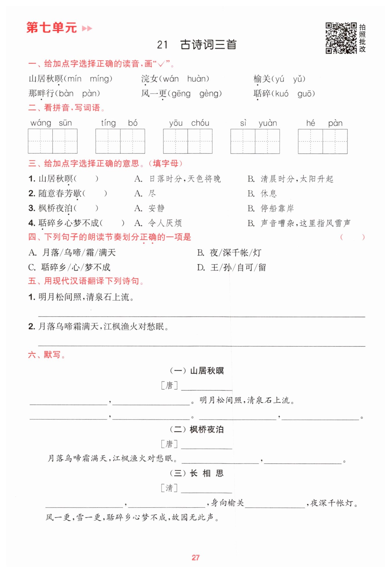 示例:漫天寒霜里,月亮在烏鴉的啼叫聲中慢慢西沉,江邊楓葉搖曳,漁船上燈火點(diǎn)點(diǎn),我看著這些景象,心中充滿(mǎn)愁緒,久久不能入睡。