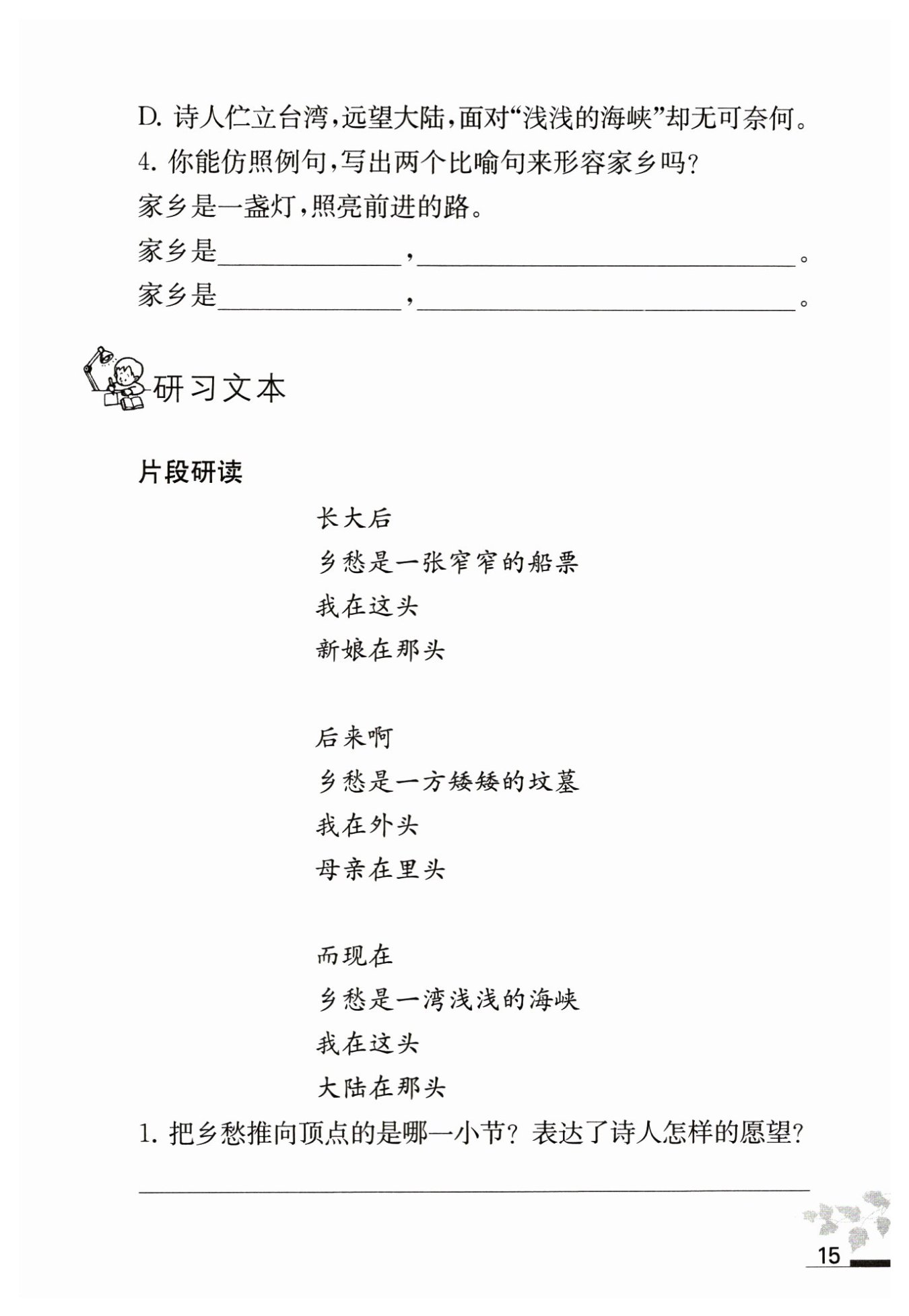 最后一節(jié)。表達了詩人希望祖國早日和平統(tǒng)一的愿望。
