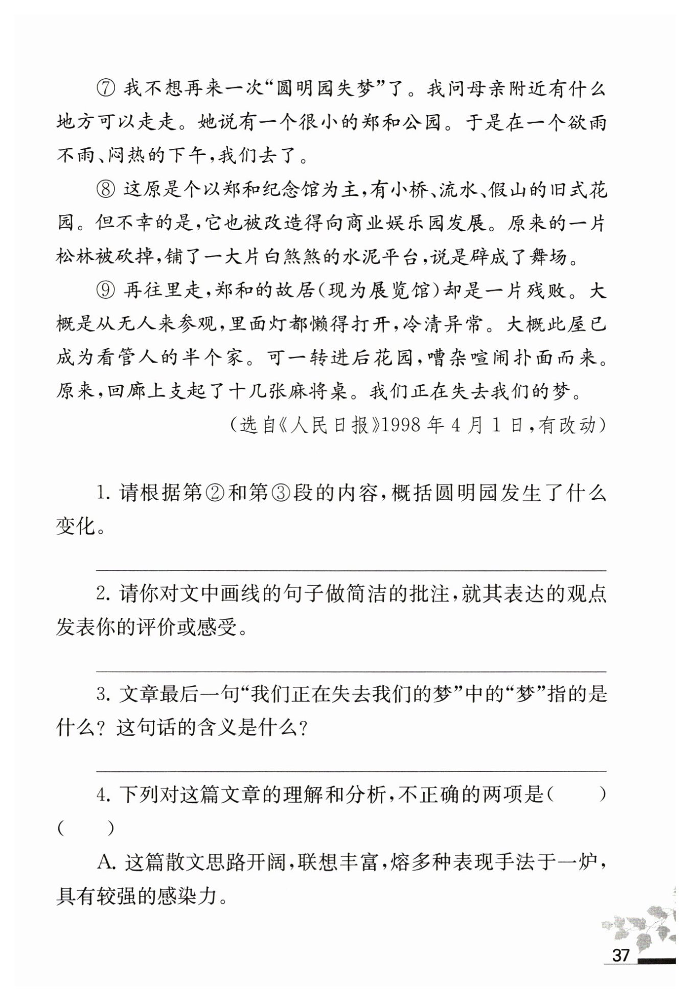作者對(duì)圓明園的開發(fā)持否定的態(tài)度。作者在文中多次運(yùn)用反問(wèn)句表達(dá)自己對(duì)“開發(fā)”