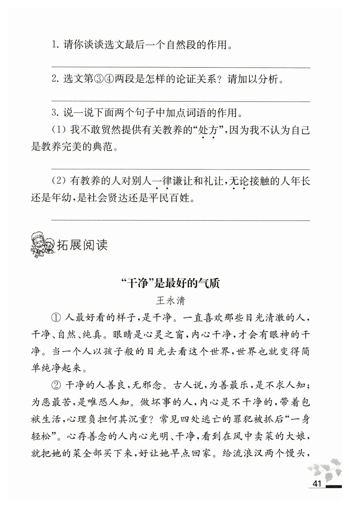 總結(jié)全文,照應(yīng)開頭,強(qiáng)調(diào)以尊重的態(tài)度對(duì)待別人,再加上隨機(jī)應(yīng)變的智慧就會(huì)具有優(yōu)雅的風(fēng)度,給人以啟迪。