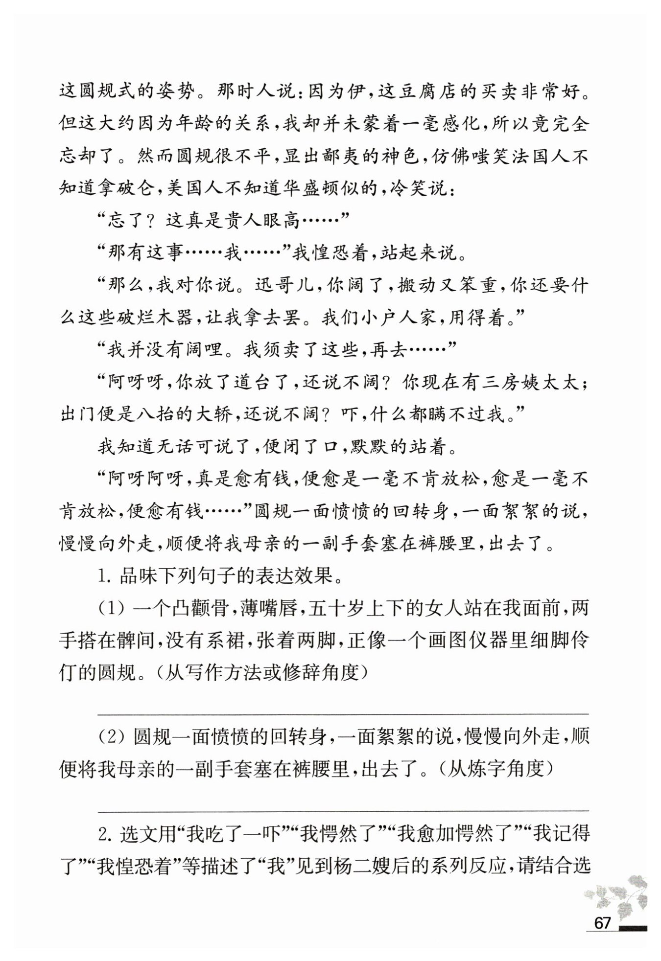 寫作方法:通過白描的手法塑造了“豆腐西施”楊二嫂尖酸、刻薄、自私的俗不可耐的形象,描寫辛亥革命后中國社會和人們精神面貌的可悲變化。