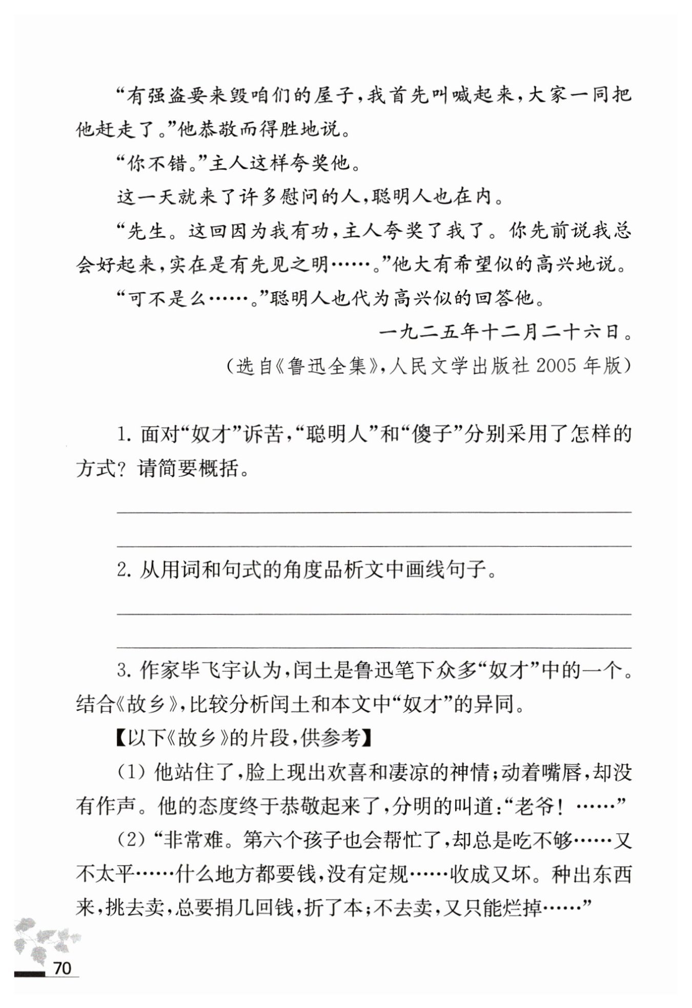 “慢慢地”“最后”寫(xiě)出主人聽(tīng)到了喊聲但毫不著急的樣子;“主人”一詞放在最后,突出了主人的威嚴(yán),凸顯了主人很是篤定的心理,說(shuō)明主人深知奴才是不敢反抗的,他對(duì)“奴才”的“奴性”是極了解的。