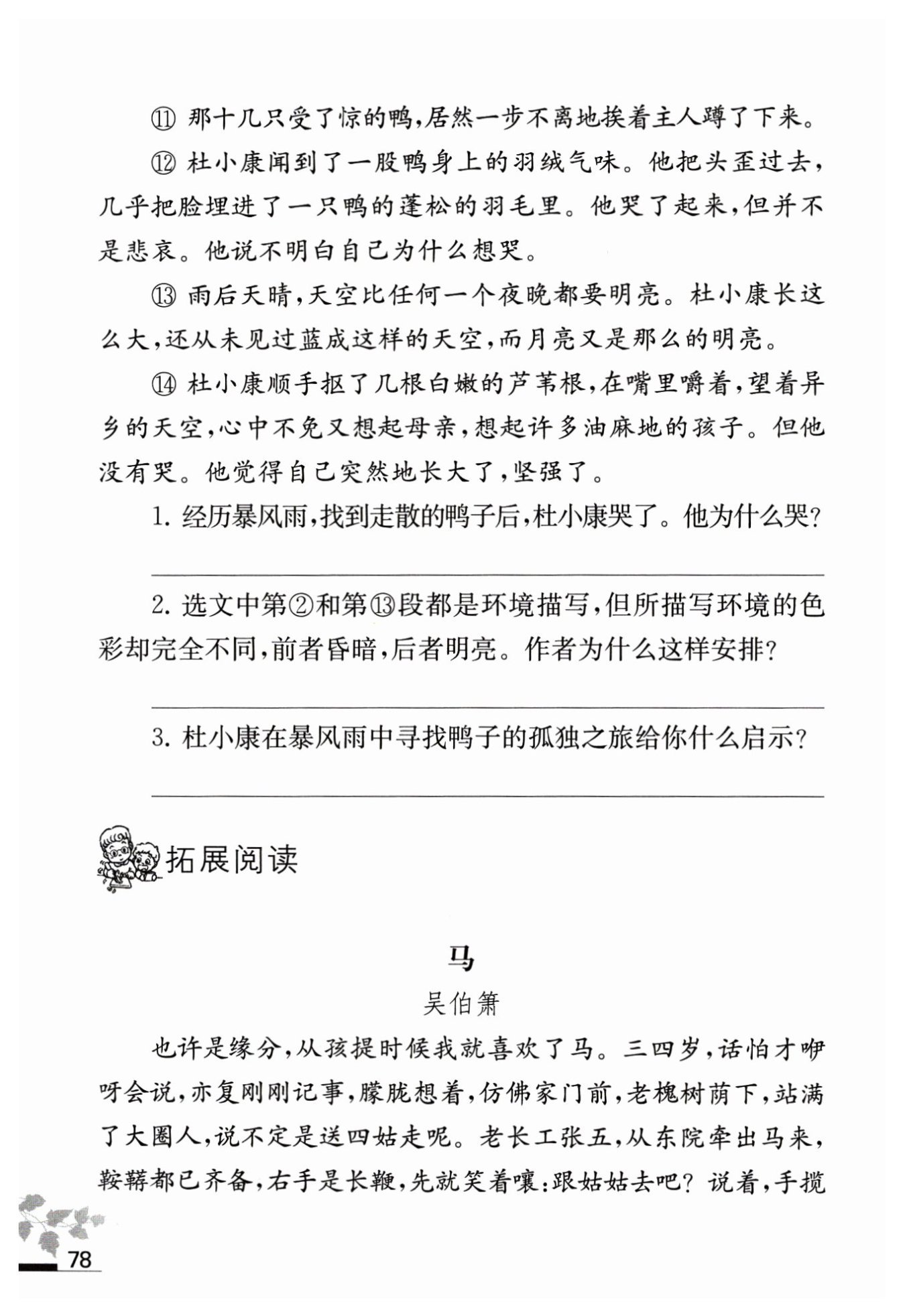 (1)暴風(fēng)雨中追趕鴨子這樣艱辛的生活不是他這個(gè)年齡的人應(yīng)該承受的,所以委屈而哭;(2)他經(jīng)歷了這樣的磨難,覺得自己忽然長大了,堅(jiān)強(qiáng)了,所以激動(dòng)得哭了。