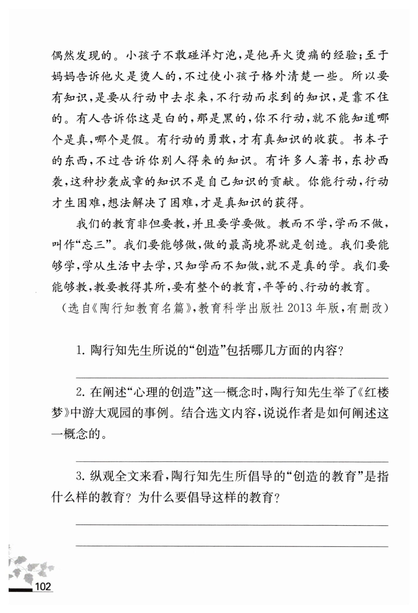 陶行知先生倡導(dǎo)的“創(chuàng)造的教育”是行動(dòng)和心理創(chuàng)造相結(jié)合的、