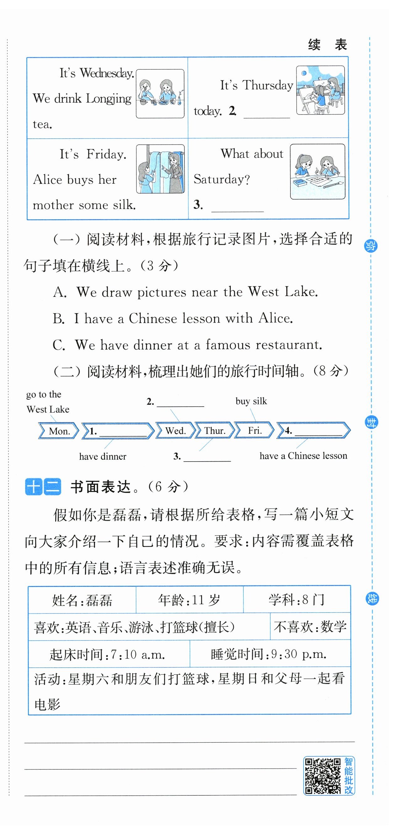 Hello, I'm Leilei. I'm eleven years old. I have eight subjects this term. I like English and Music. But I don't like Maths. It is difficult for me. I like playing basketball and I can play it well. I also like swimming. I get up at 7:10 a.m. and go to bed at 9:30 p.m. every day. On Saturday, I often play basketball with my friends. On Sunday, I go to the cinema with my parents.