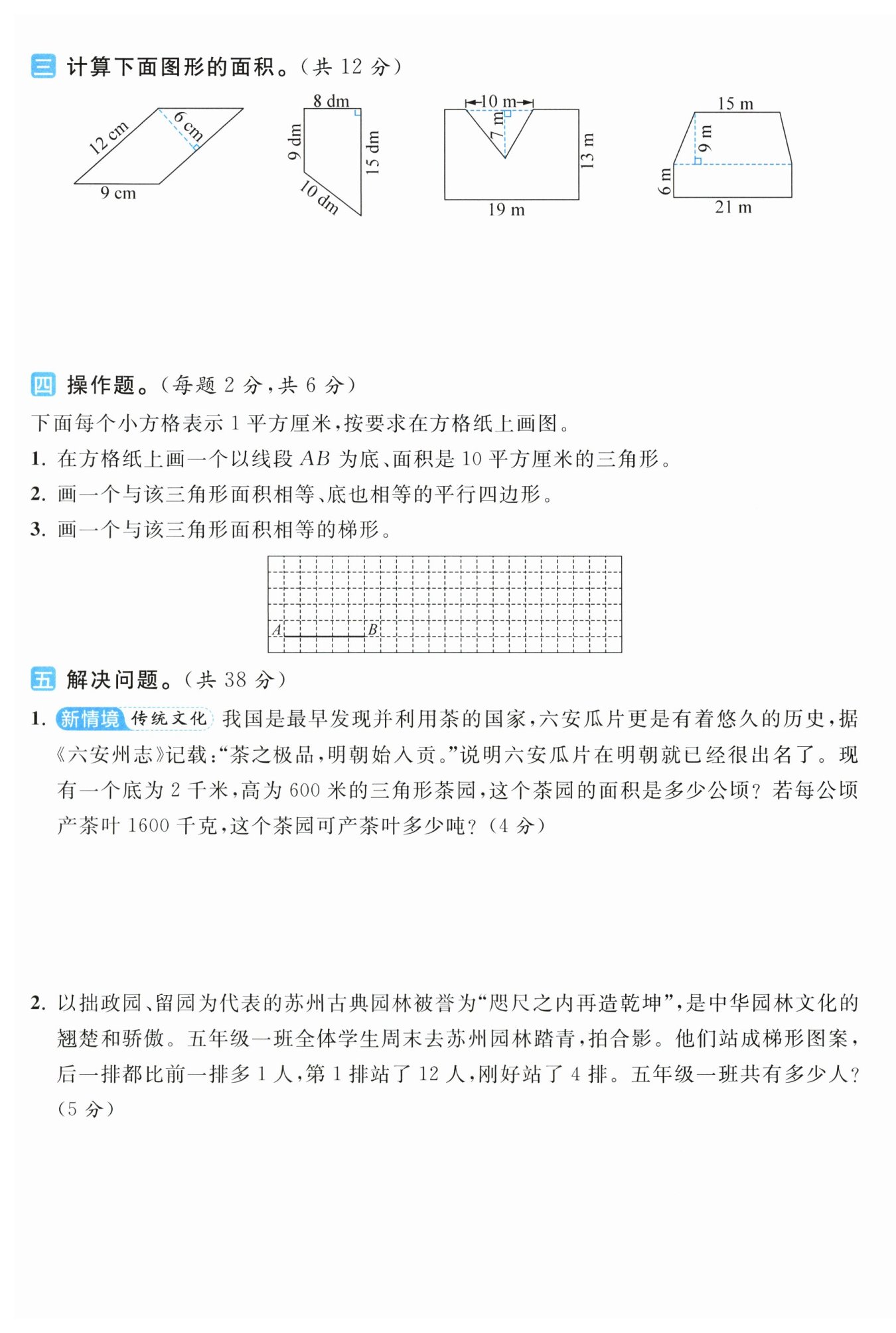 - 2千米 = 2000米,茶園面積:$2000×600÷2 = 600000$(平方米),600000平方米 = 60公頃。