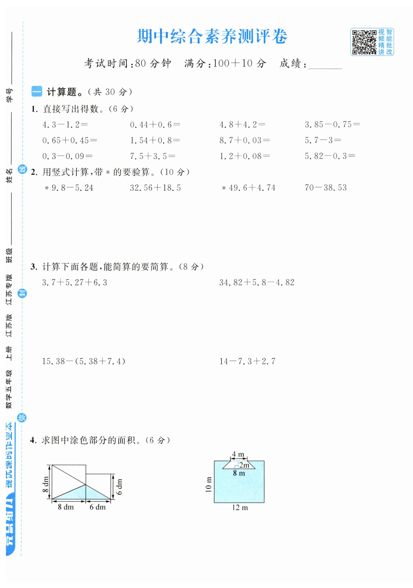 $(8 + 6)×8÷2 - 8×8÷2 = 24(dm^{2})$