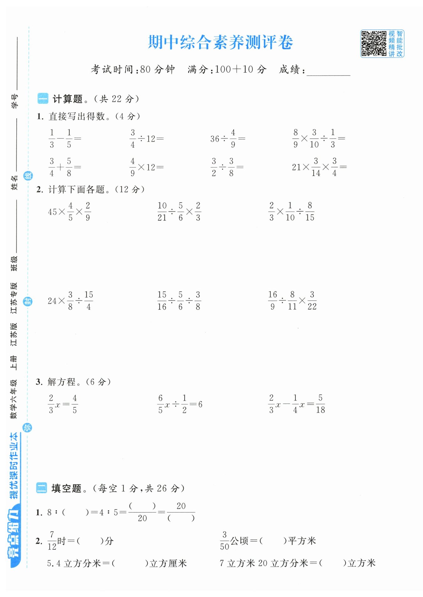 解:$\frac{6}{5}x\div\frac{1}{2}=6$