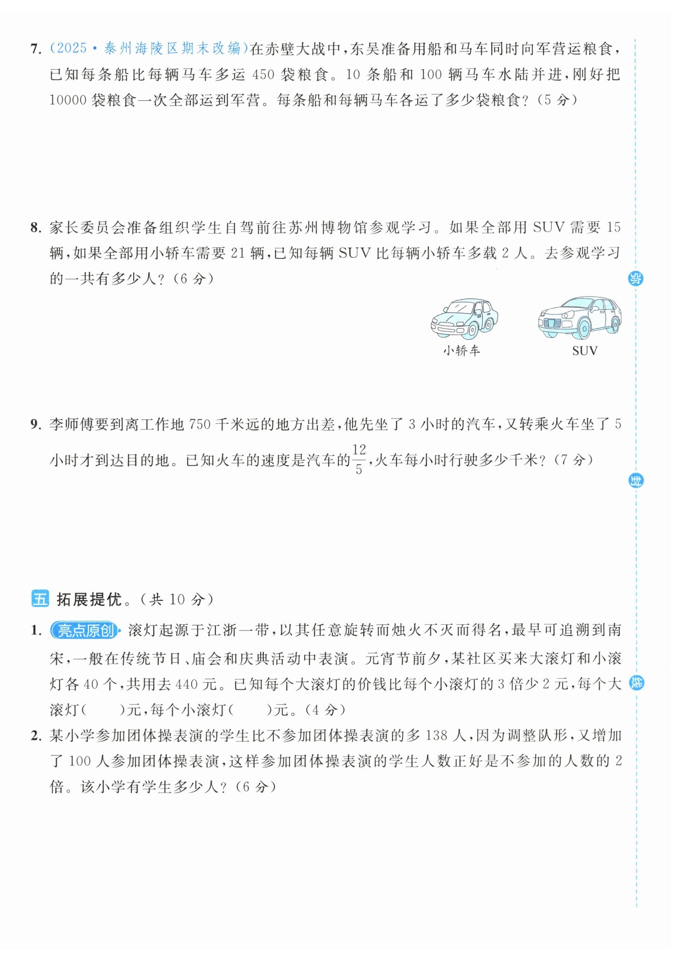 $ 每條船:(10000+100×450)÷(10+100)=500(袋)$