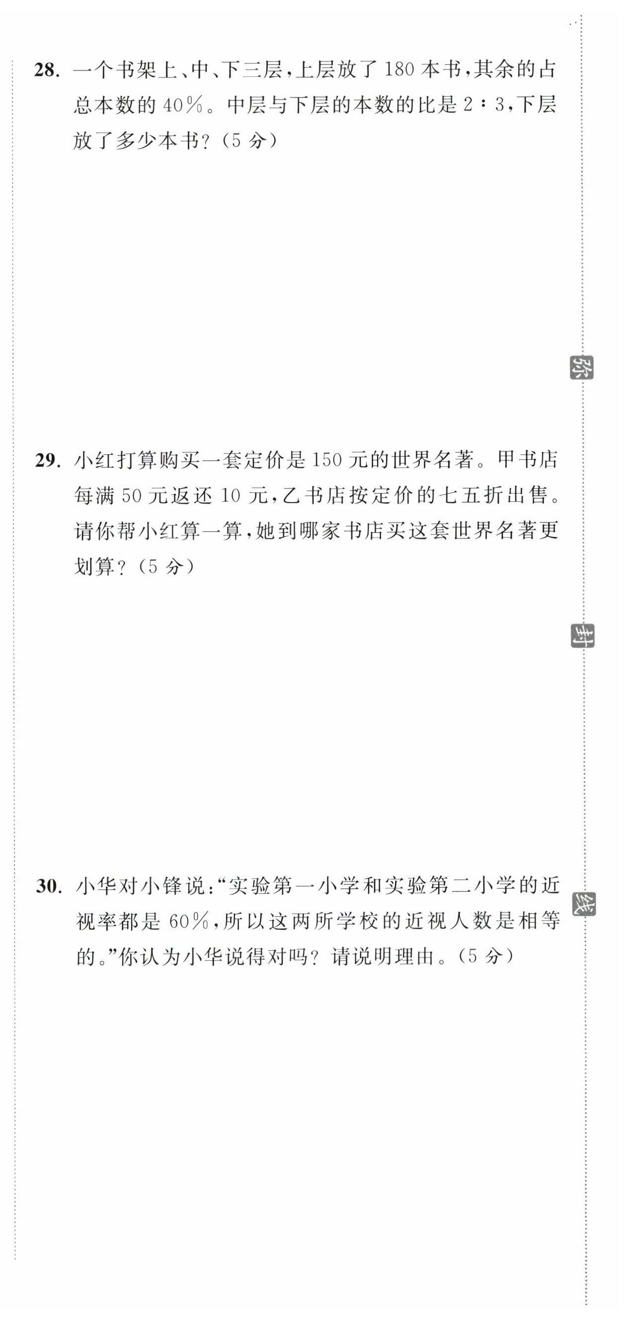 答:小華說得不對,因為學(xué)校的總?cè)藬?shù)可能不同,所以近視人數(shù)也可能不同。