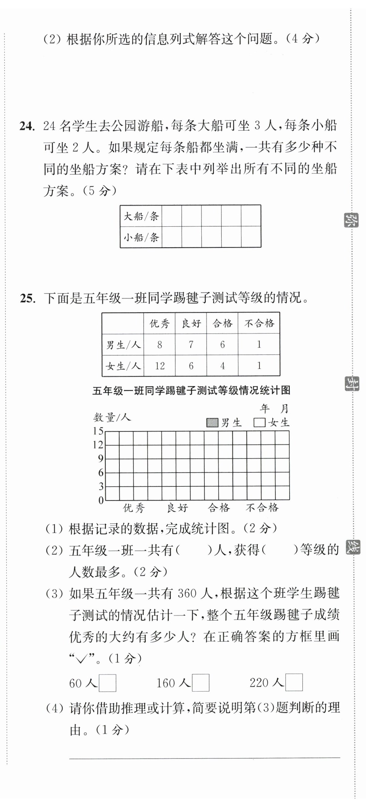 五年級(jí)一班一共有45人,踢毽子成績(jī)優(yōu) 秀的有20人,