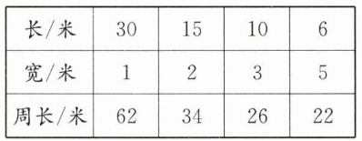 答 : 可以設(shè)計出4種不同的長方形,22<26<34 <62,周長最小是22米。