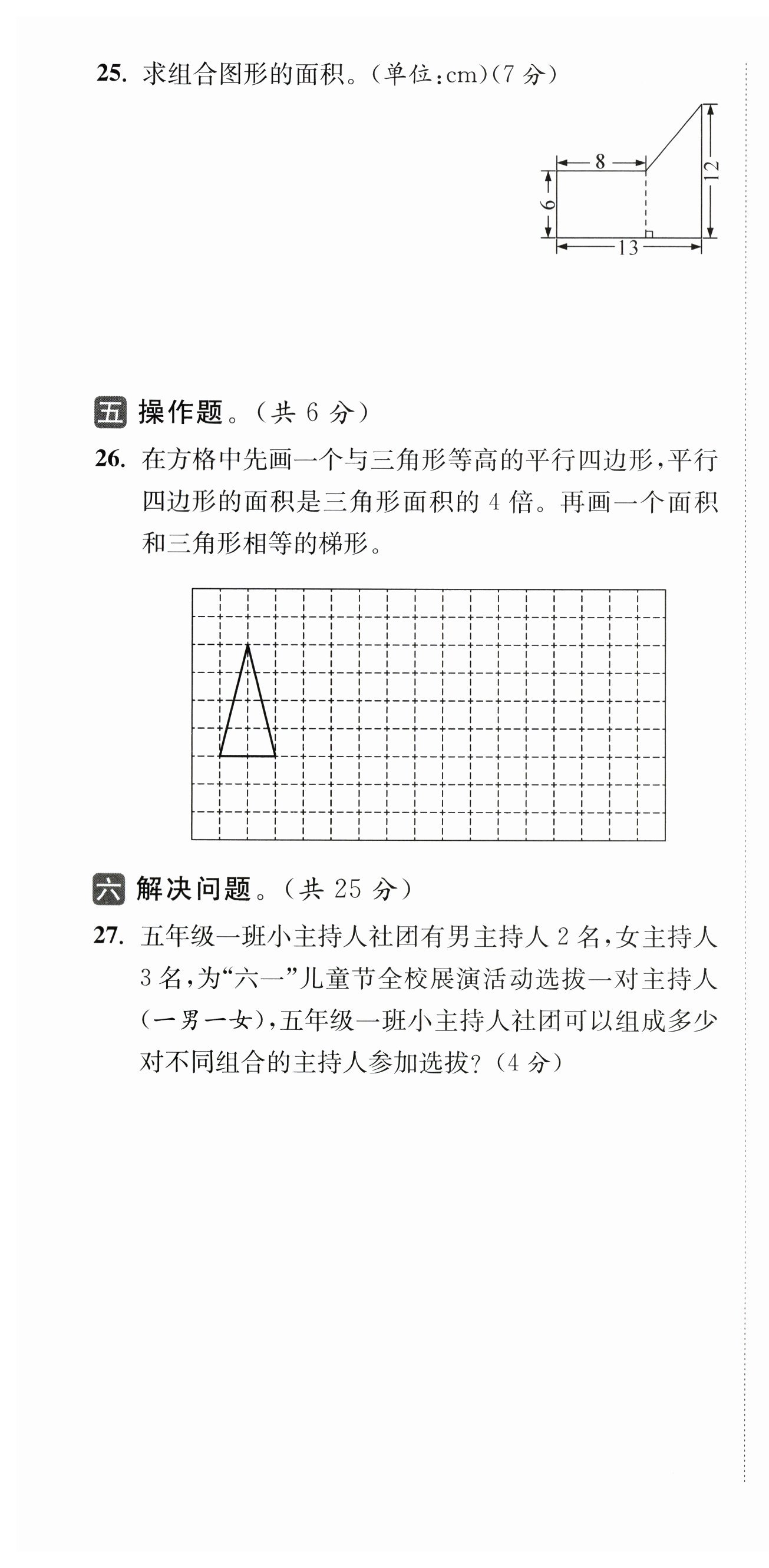 6×8+(6+12)×(13?8)÷2=93(cm2)