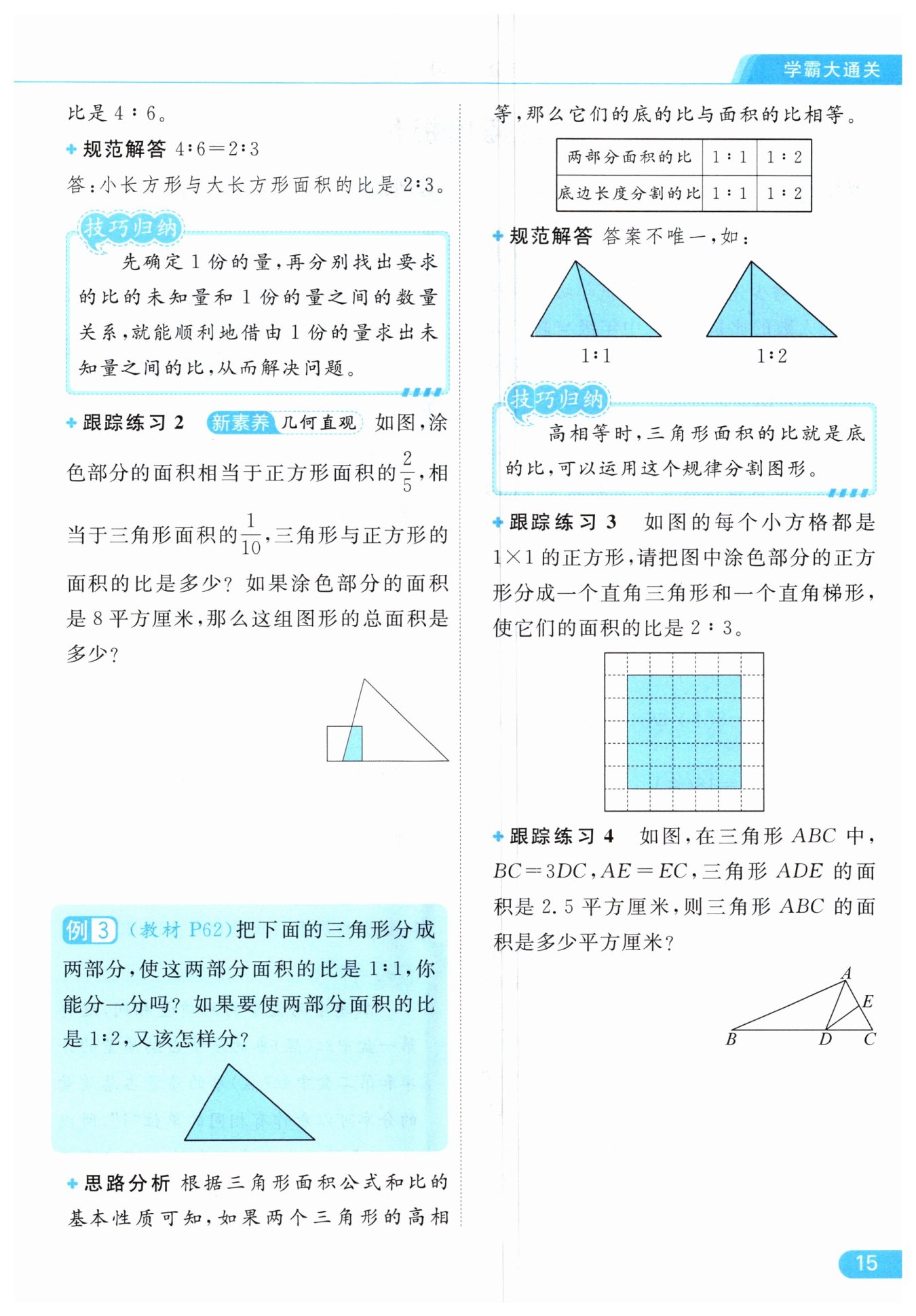 因為涂色部分的面積相當(dāng)于三角形面積的$\frac{1}{10},$所以三角形面積是$1\div\frac{1}{10}=10$份。