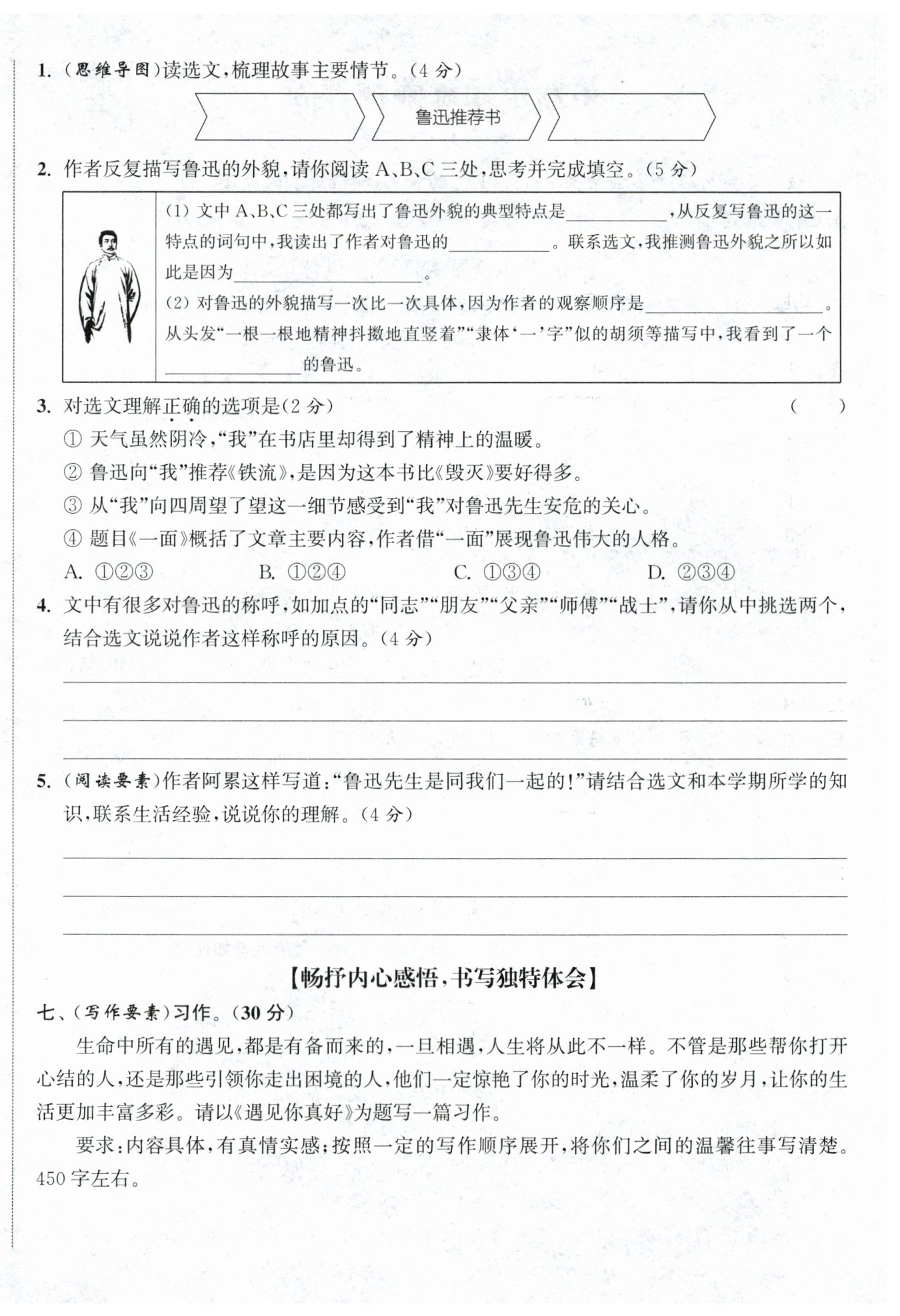 示例:選“同志”,因魯迅和進(jìn)步者共目標(biāo),選文里他為青年推薦書促覺(jué)醒,是并肩作戰(zhàn)的