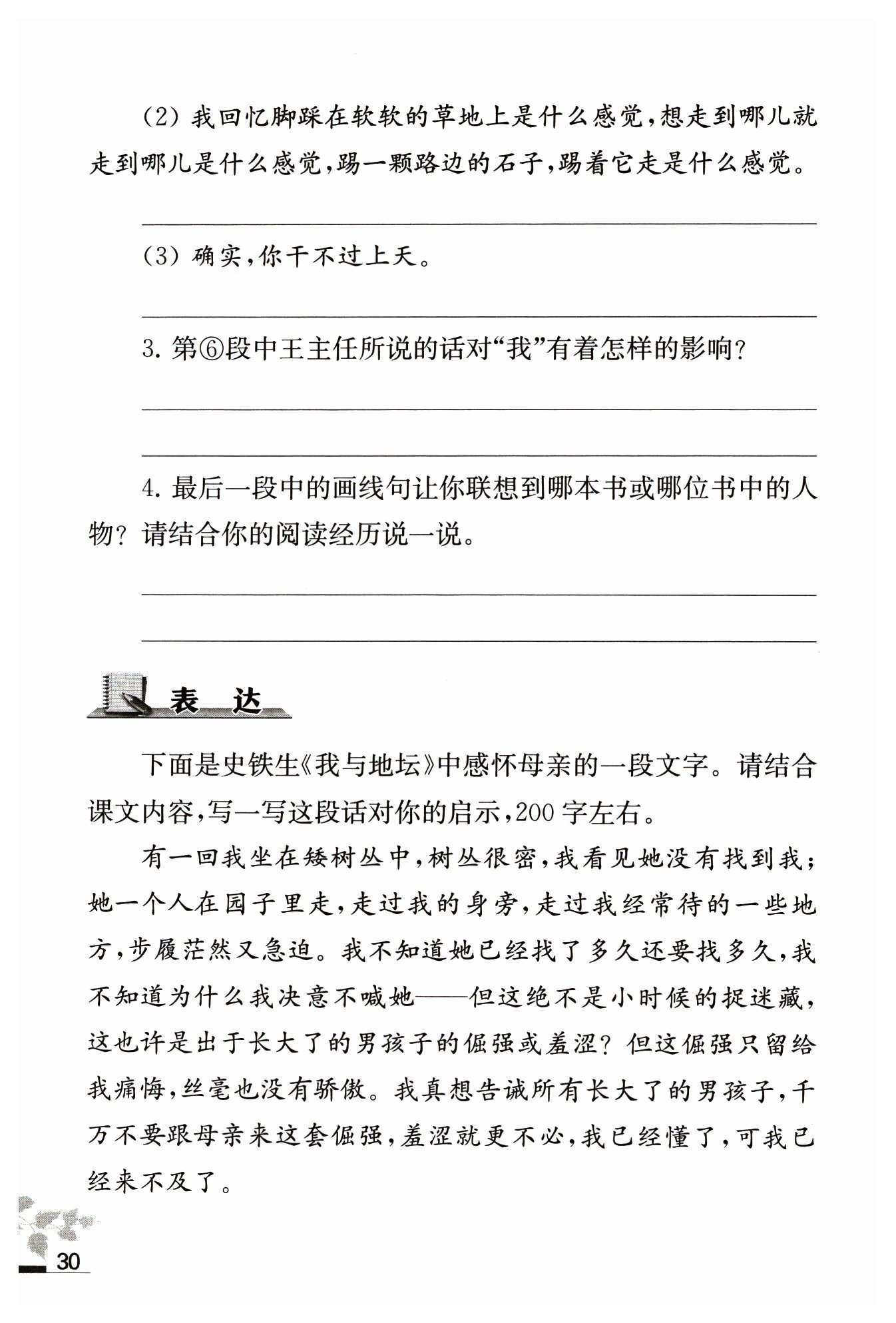 [示例]這段文字深刻地描繪了作者史鐵生對母親的懷念和