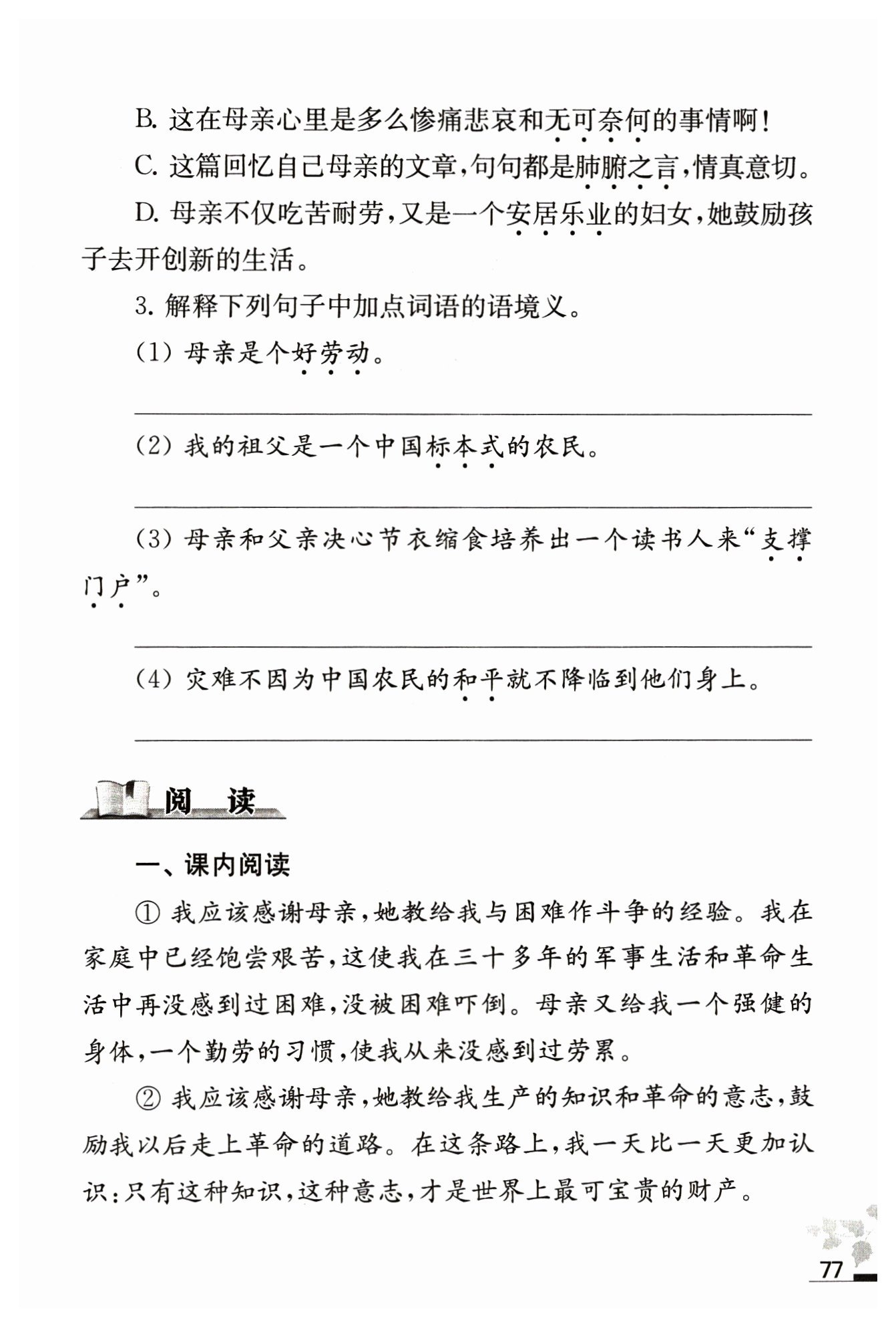 好勞動:方言。勞動的好手。文中指母親什么農(nóng)活都能做。