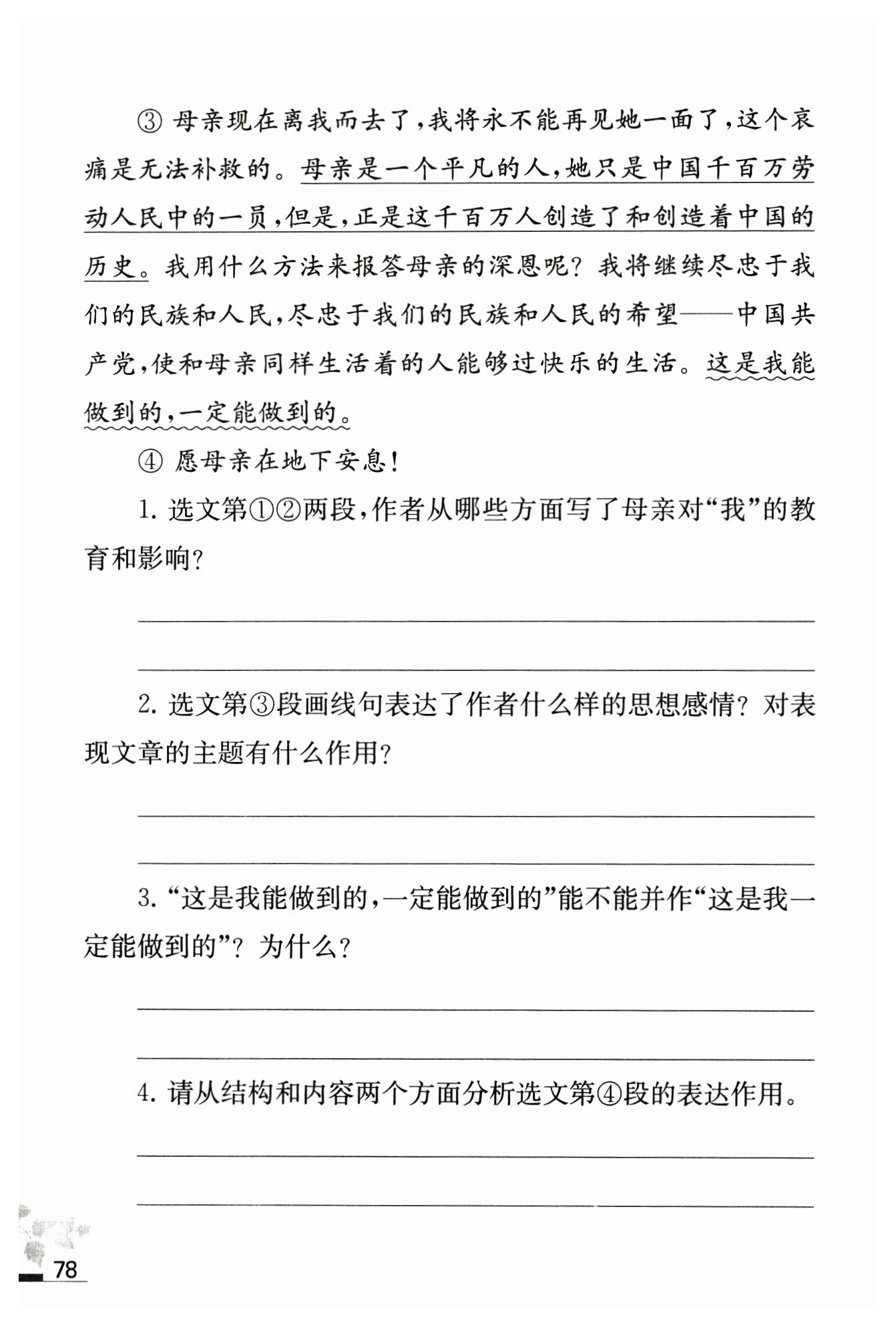 個(gè)強(qiáng)健的身體,一個(gè)勤勞的習(xí)慣。③母親教給“我”生產(chǎn)