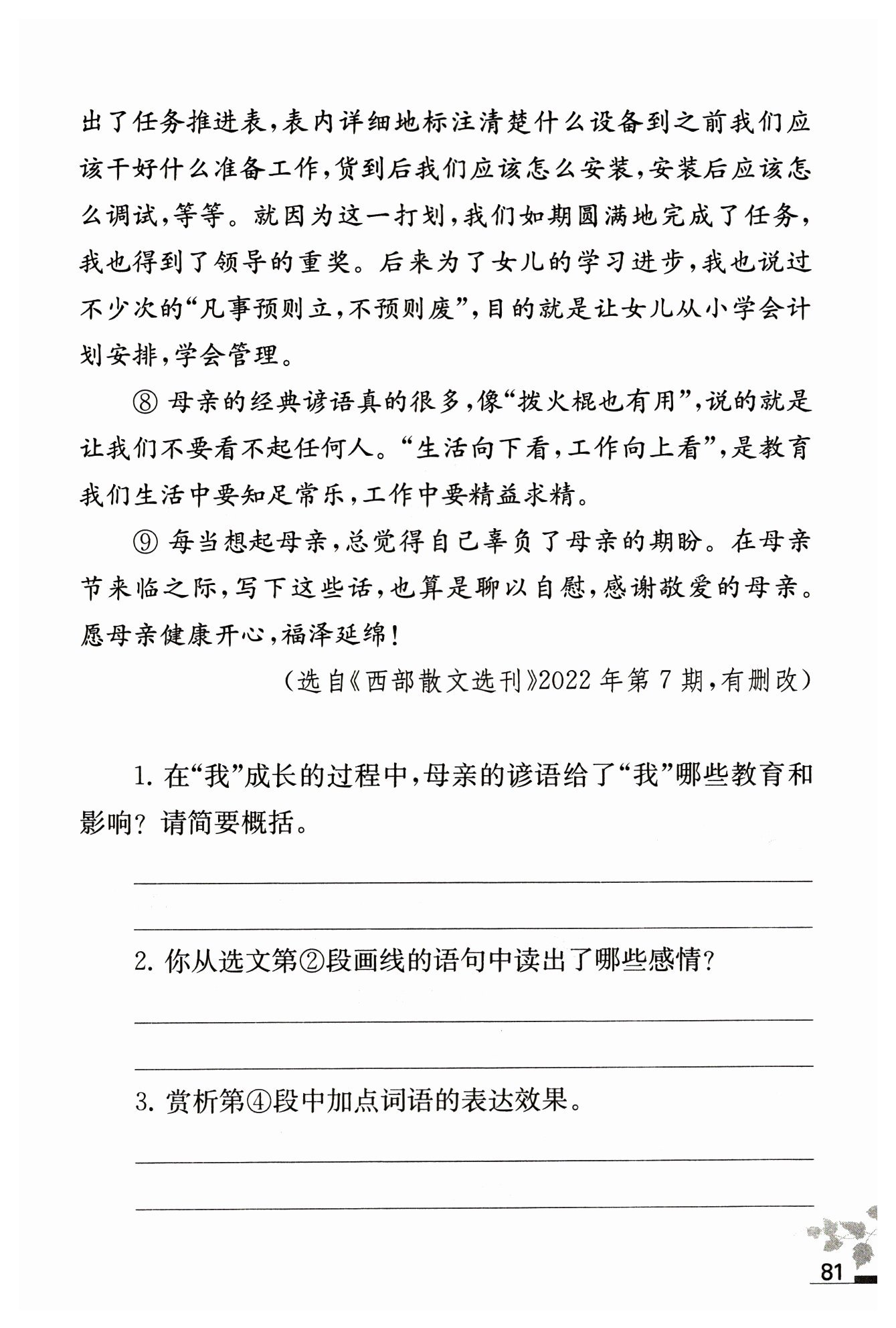 作后,母親教育“我”凡事做好計劃,讓“我”學(xué)會了管理,