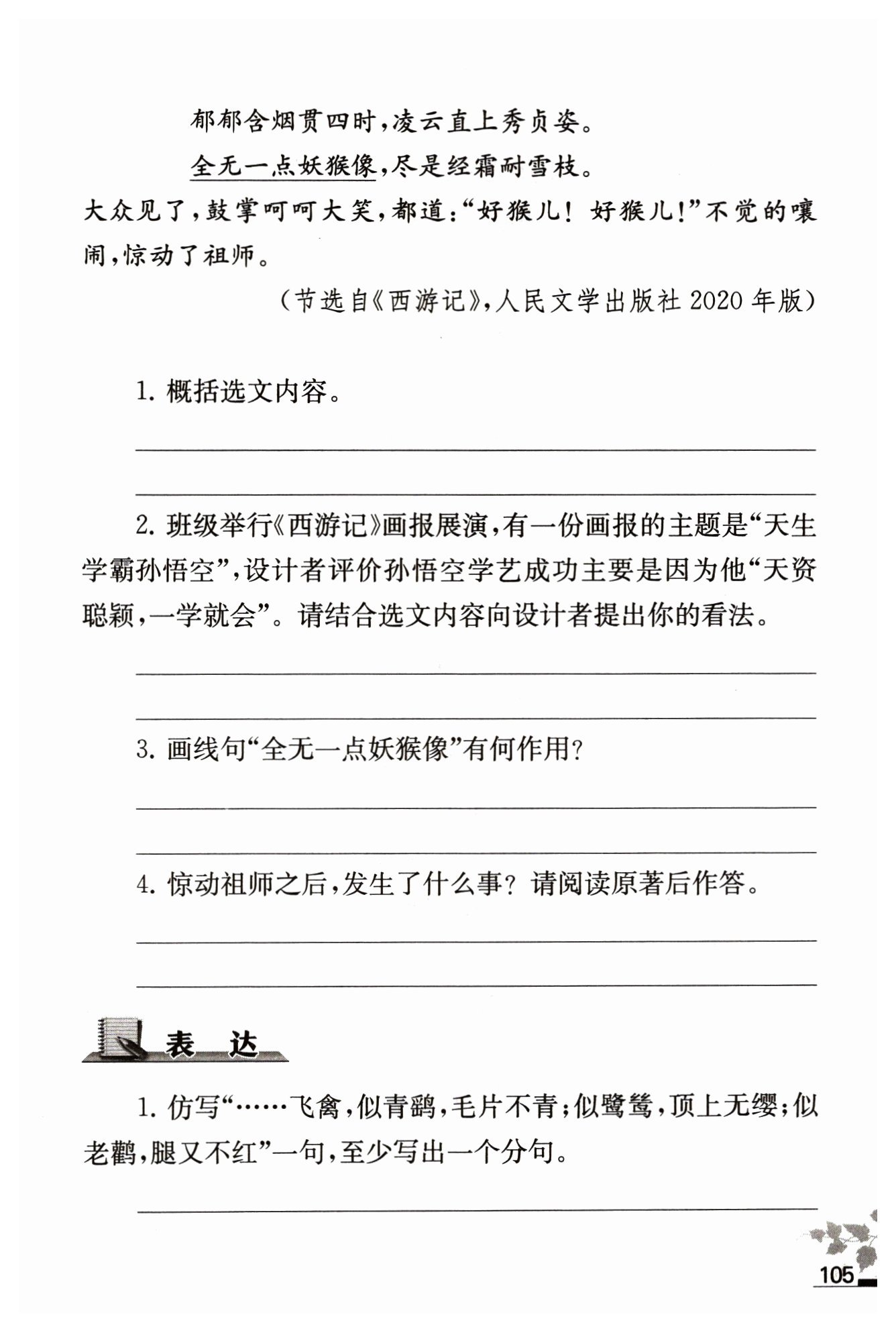 松樹,體現(xiàn)悟空變身之術(shù)的精妙;從結(jié)構(gòu)上看,為后文悟空學(xué)成回到花果山,橫掃域內(nèi)做鋪墊。