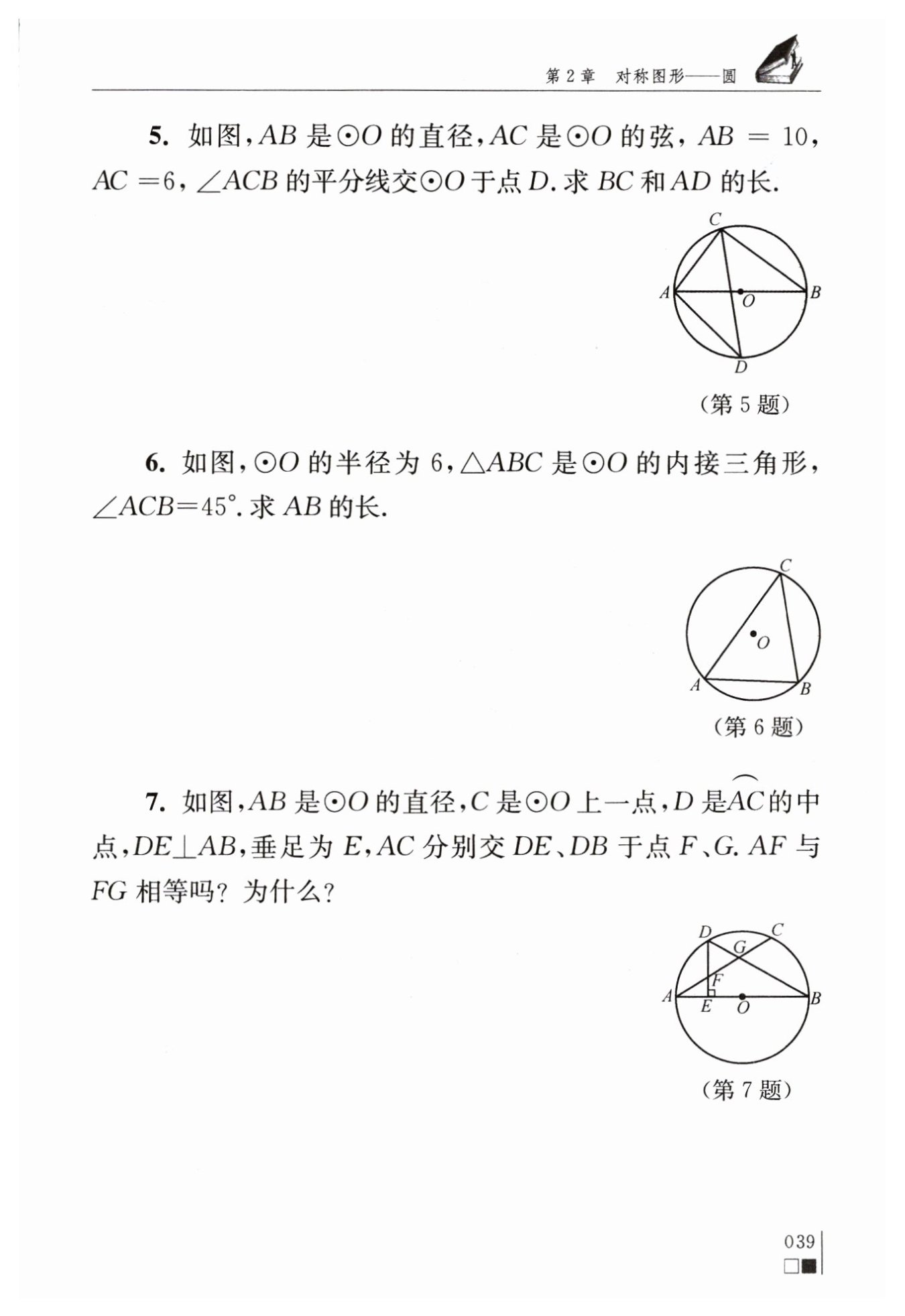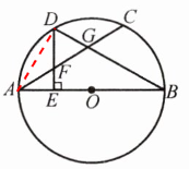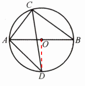 ∴?$∠ACB=90°,$??$AO=DO= \frac 12\ \mathrm {A}B= 5$?