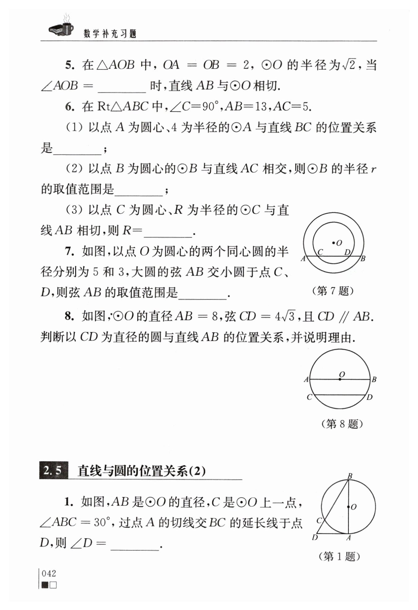∴以?$CD$?為直徑的圓與直線?$AB$?相交