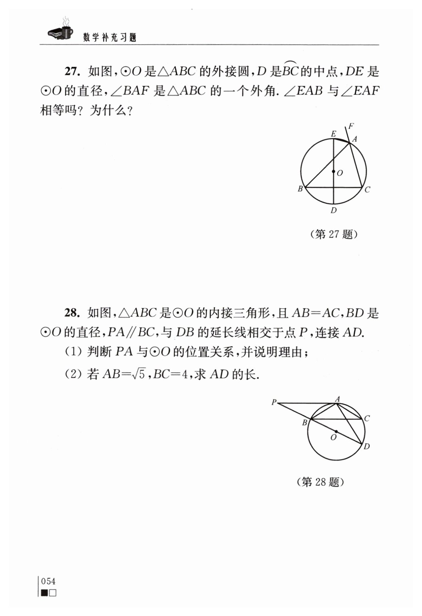 解:?$(1)P A$?與?$\odot O$?相切,理由如下: