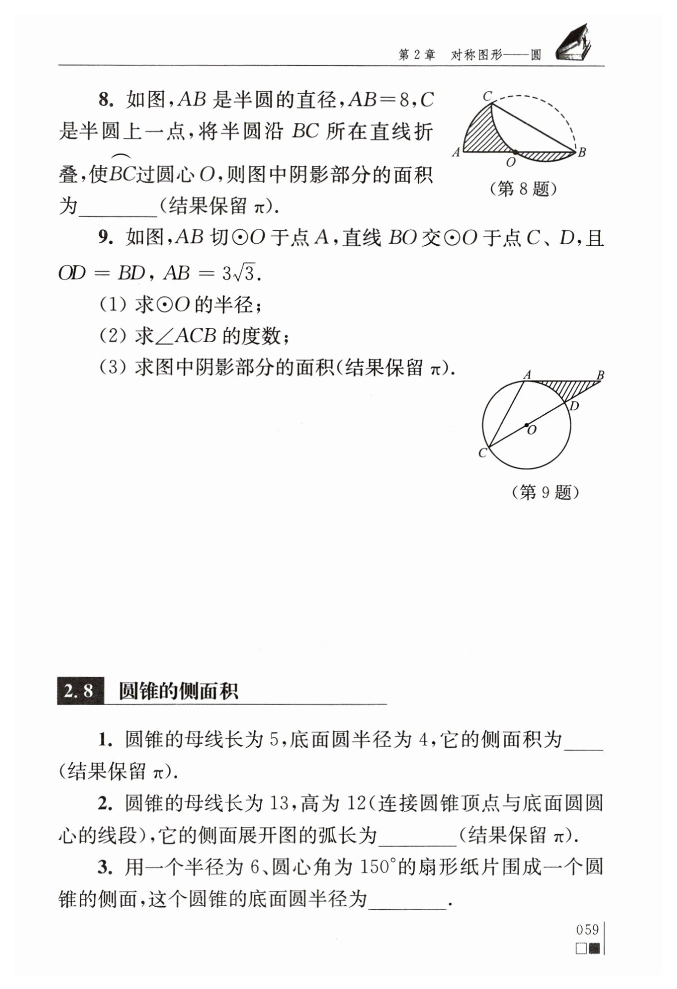 ?$= \frac 12×3\sqrt 3×3-\frac 16×π×3^2$?