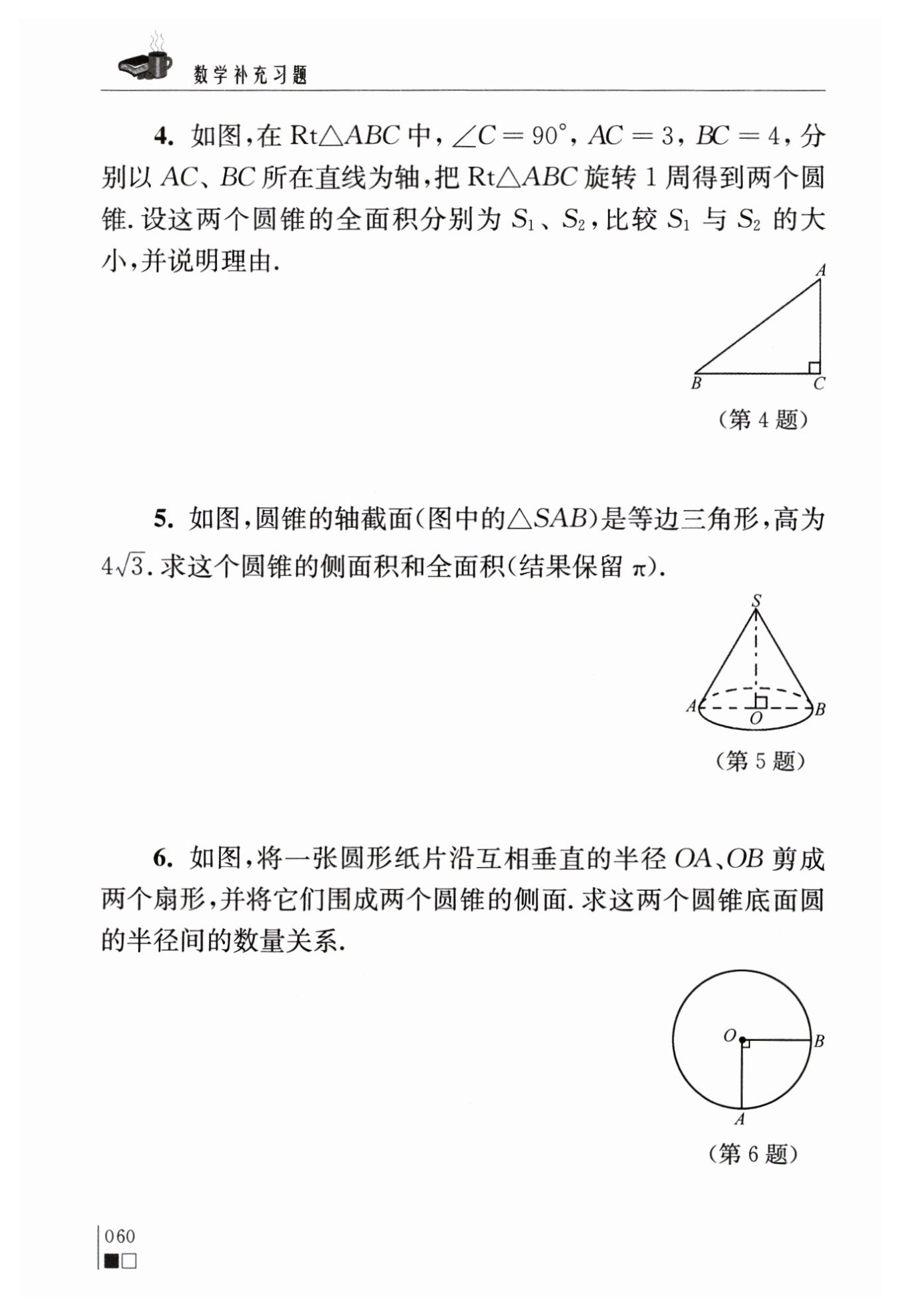 ∴這個(gè)圓錐的全面積?$=π×4^2+32π= 48π$?