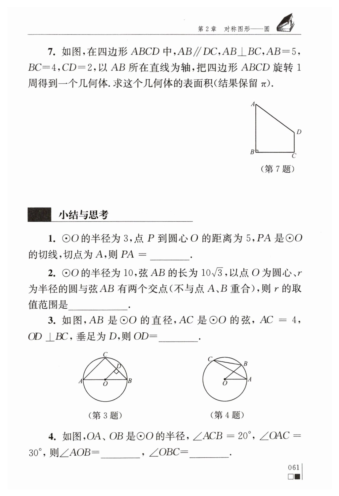 解:過點(diǎn)$D$作$DE\perp AB$于點(diǎn)$E,$因為$AB// DC,$$AB\perp BC,$所以四邊形$BCDE$是矩形,則$BE = CD = 2,$$DE = BC = 4,$$AE=AB - BE=5 - 2 = 3。$