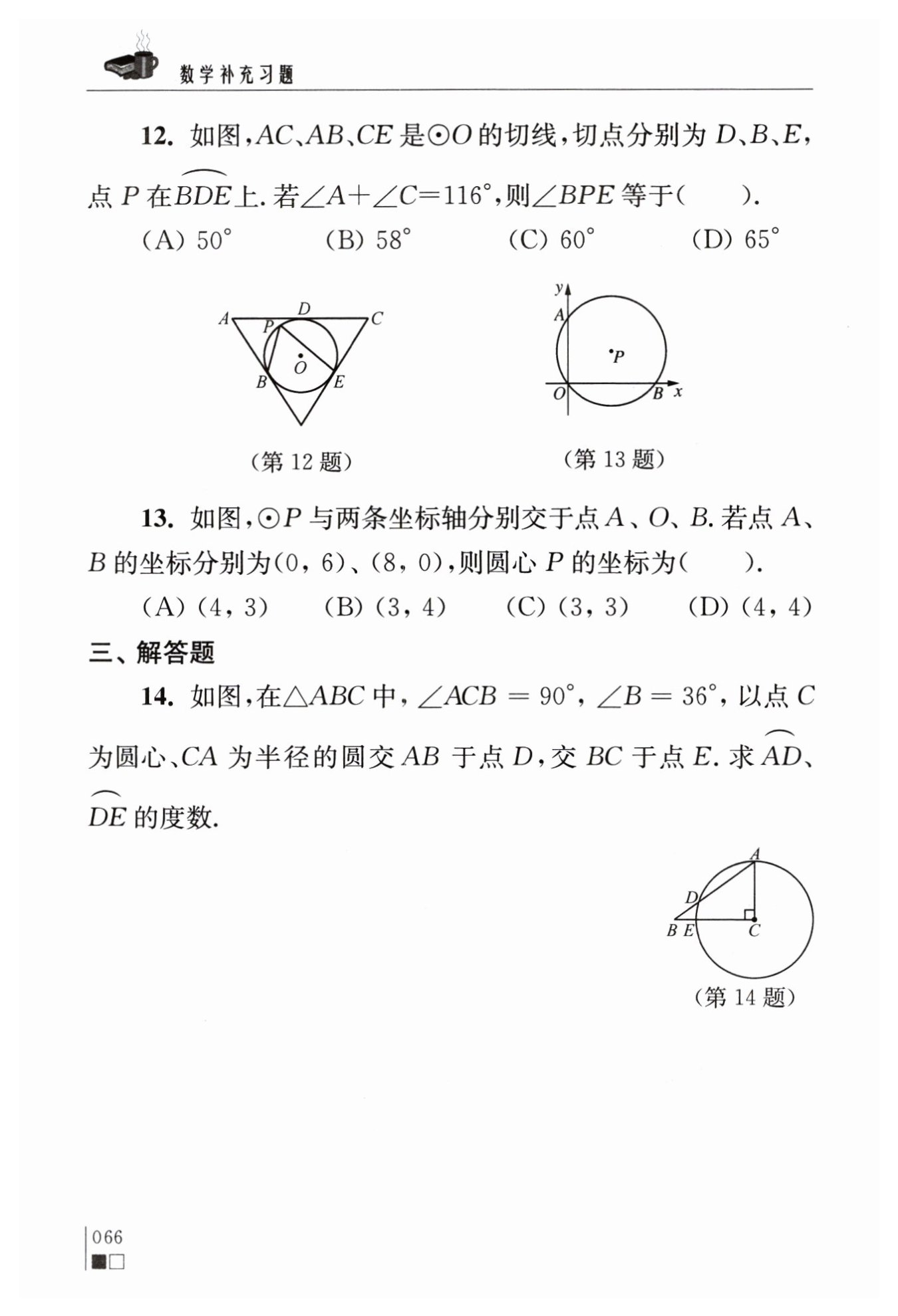 ∵?$∠ACD、$??$∠BCD$?分別是?$\widehat {AD },$??$\widehat {DE }$?所對的圓心角