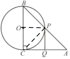 ∵?$BC$?是?$⊙O$?的直徑,∴?$∠BP C=90°$?