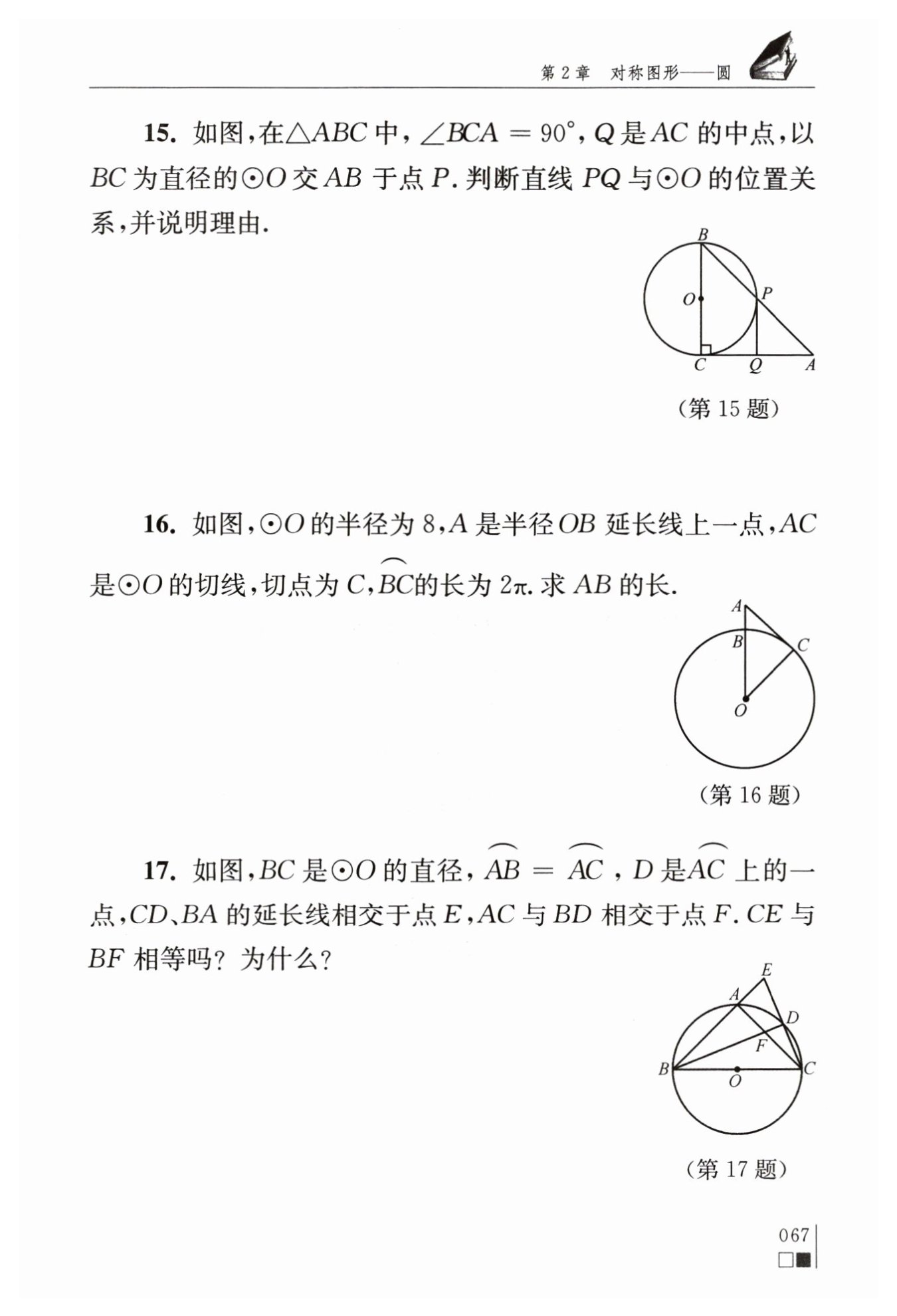 ∵?$∠BCA=90°,$?∴?$∠OCP+∠P CQ=90°$?