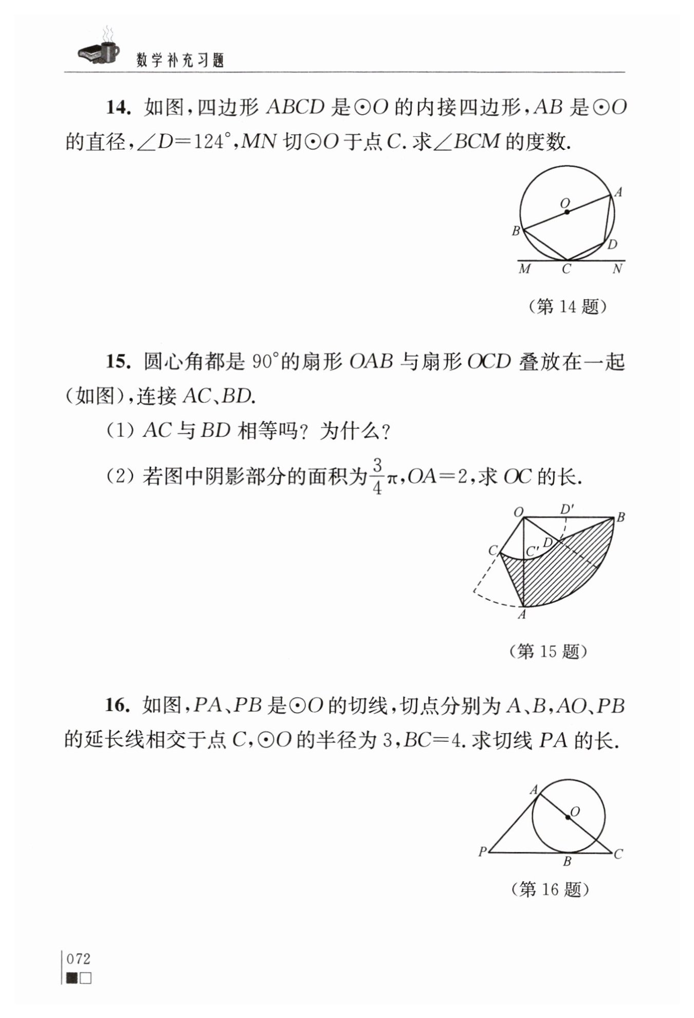 ∴?$ $?陰影部分的面積?$S=S_{扇形OAB}-S_{扇形OCD}$?