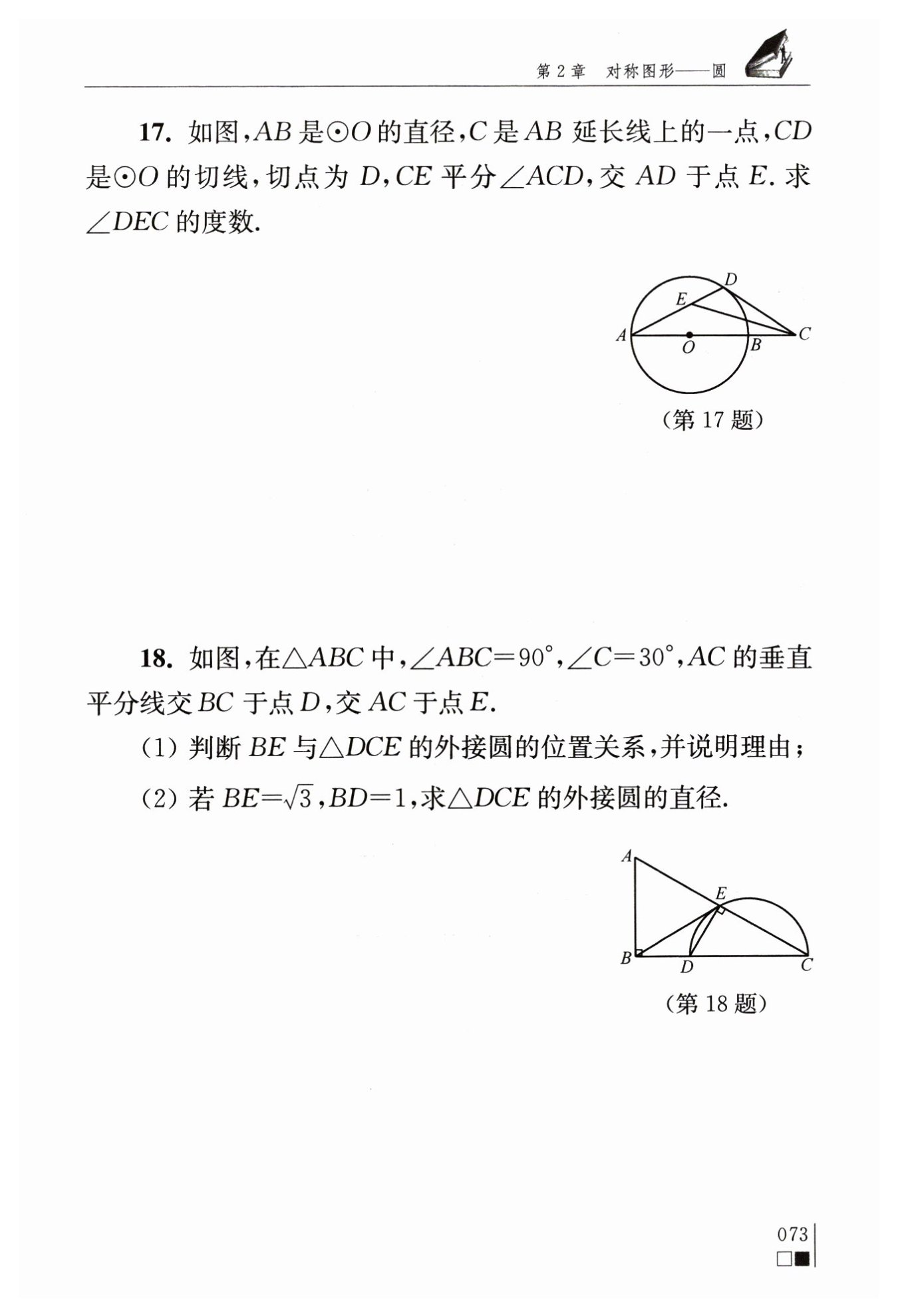 ∵?$ OE = OC,$?∴?$ ∠OEC = ∠C = 30°$?