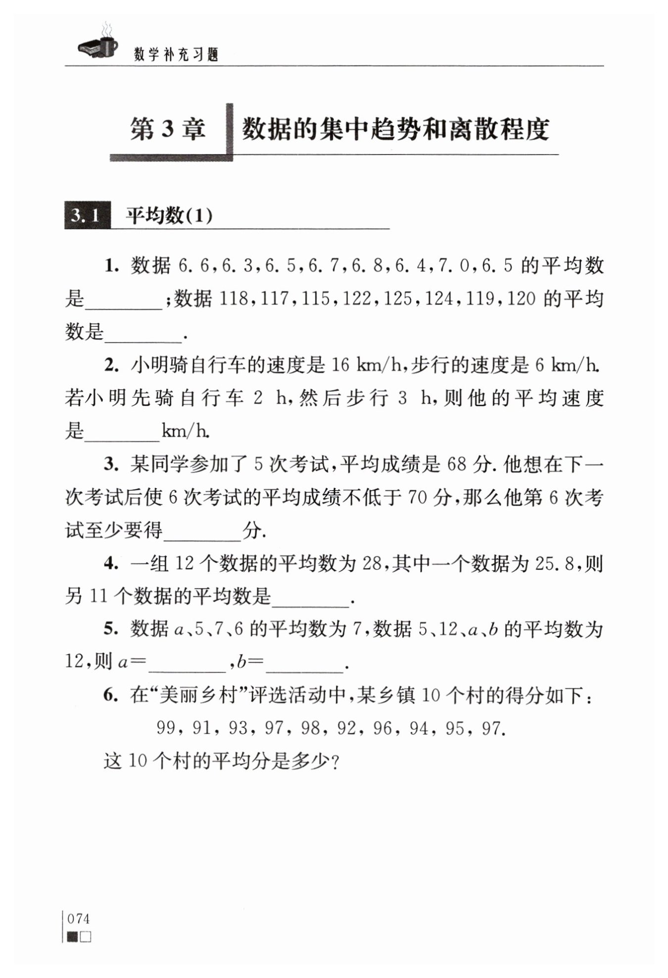 答:這?$10$?個(gè)村的平均分是?$95.2$?分。