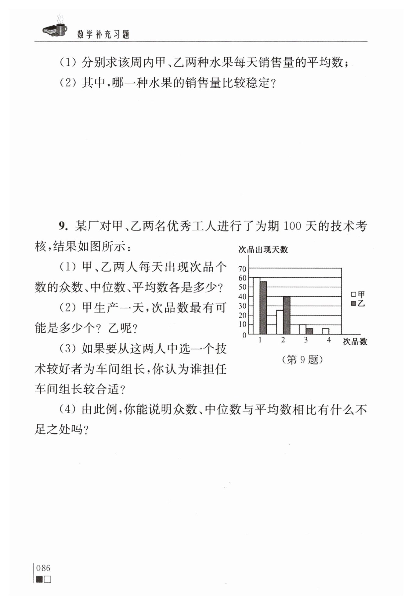 根據(jù)眾數(shù)的意義,可知甲生產(chǎn)一天,次品數(shù)最有可能是?$1$?個,乙也是?$1$?個