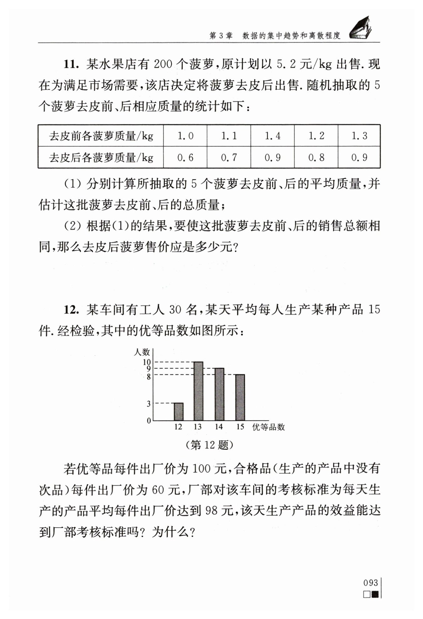 這?$200$?個菠蘿去皮前的總質(zhì)量為:?$ 1.2×200=240($?千克?$) $?