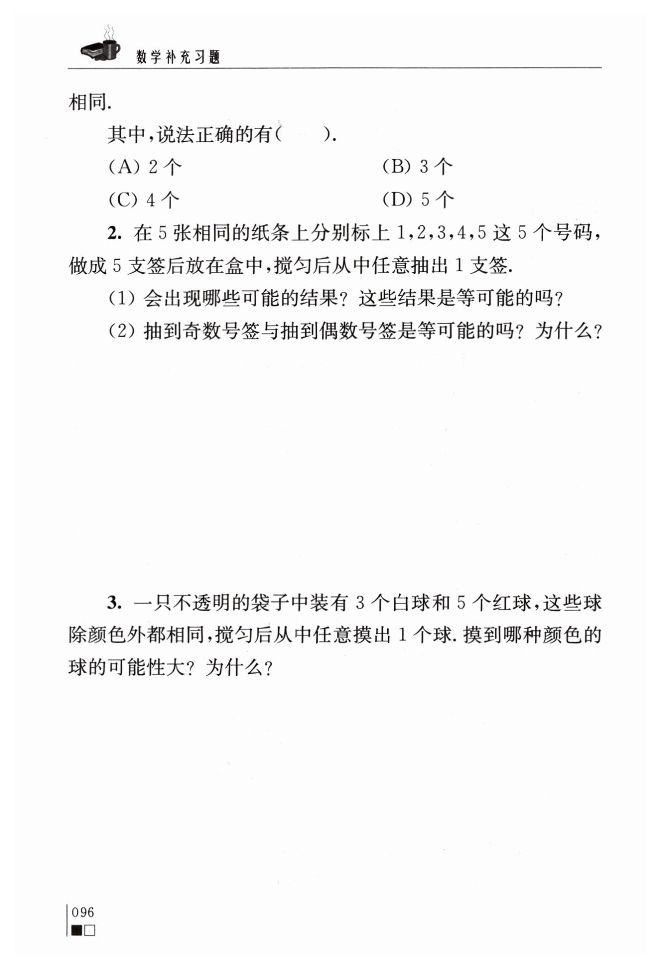 ∴抽到奇數(shù)號(hào)簽與抽到偶數(shù)號(hào)簽不是等可能的