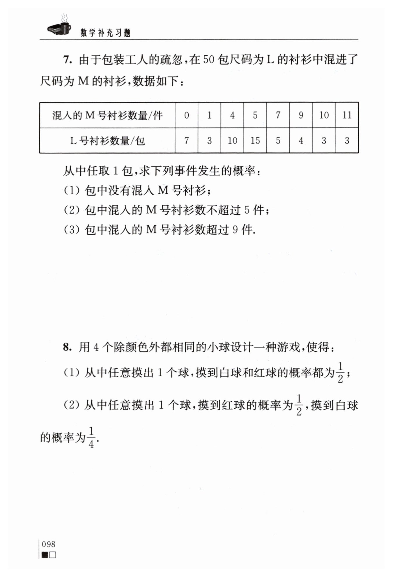 解:?$(1)$?總共有?$50$?包襯衫,其中沒(méi)有混入?$M$?號(hào)襯衫的有?$7$?包