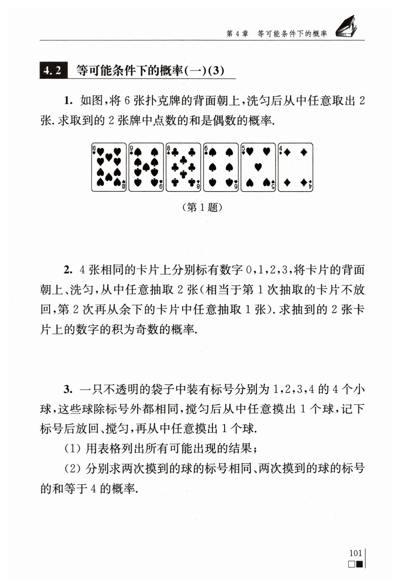 ?$ $?兩次摸到的球的標(biāo)號的和等于?$4$?的有?$(1,$??$3)、$??$(2,$??$2)、$?