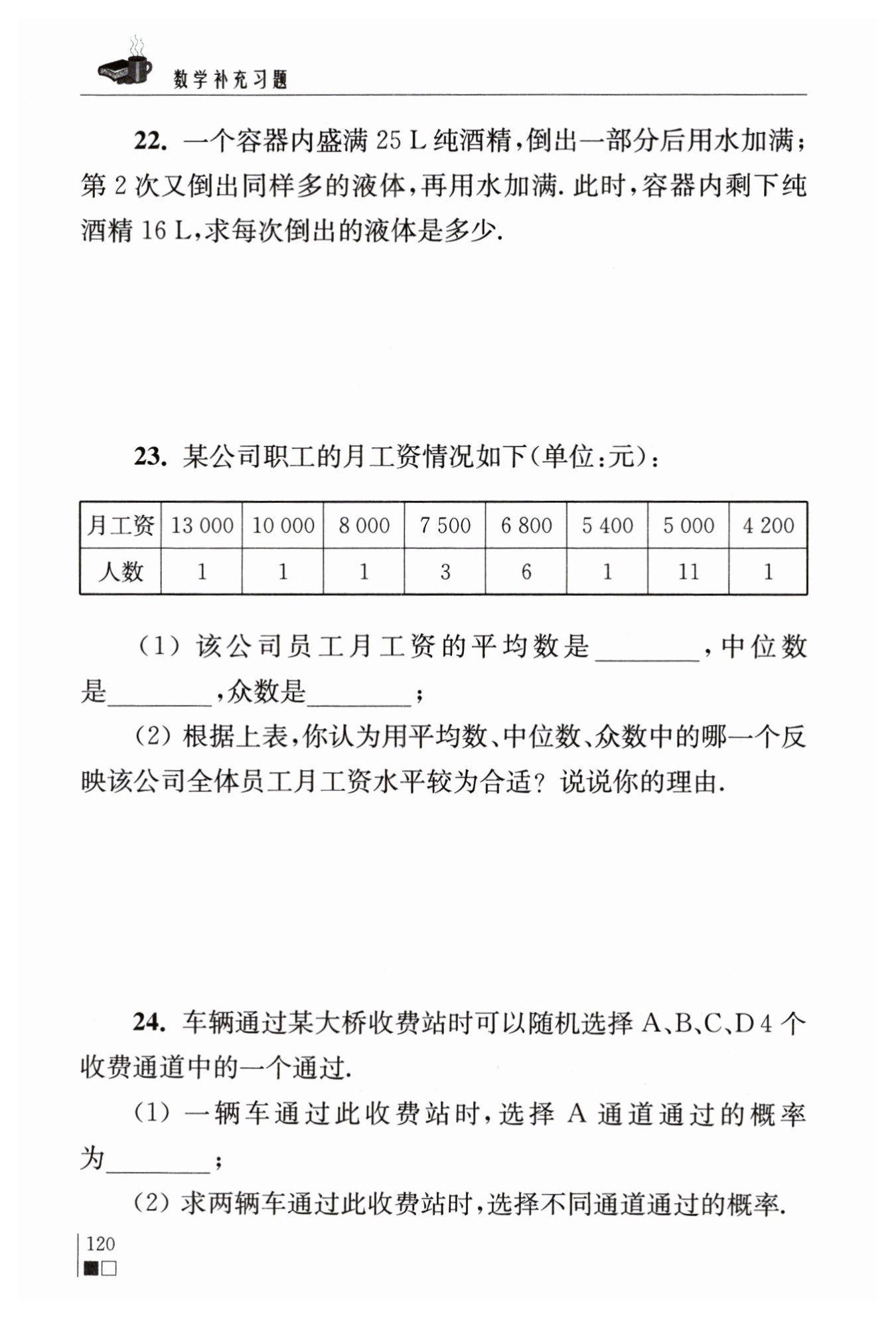 ∴每次倒出的液體是?$5\ \mathrm {L}$?