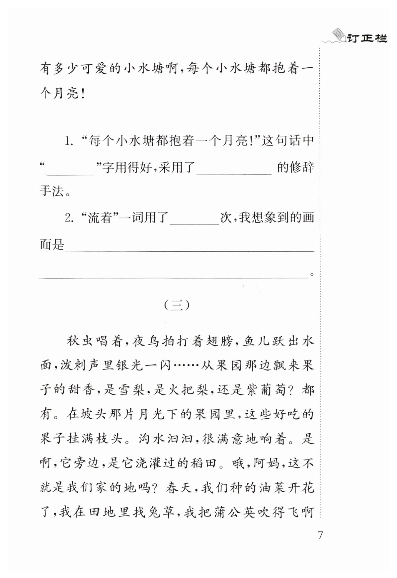 示例:清澈的溪水緩緩流過,濺濕了山草和
