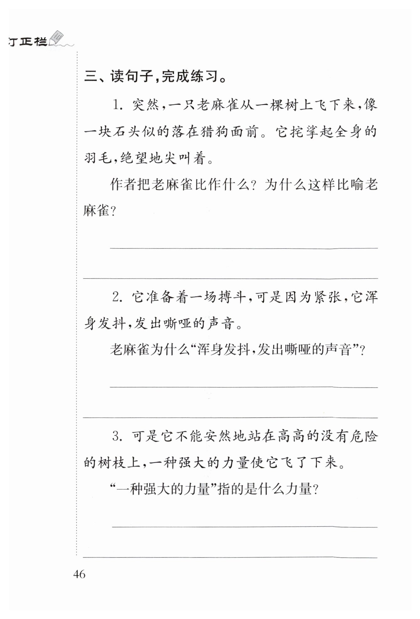 同時(shí)也體現(xiàn)了老麻雀的勇敢與奮不顧身,表現(xiàn)了老麻雀