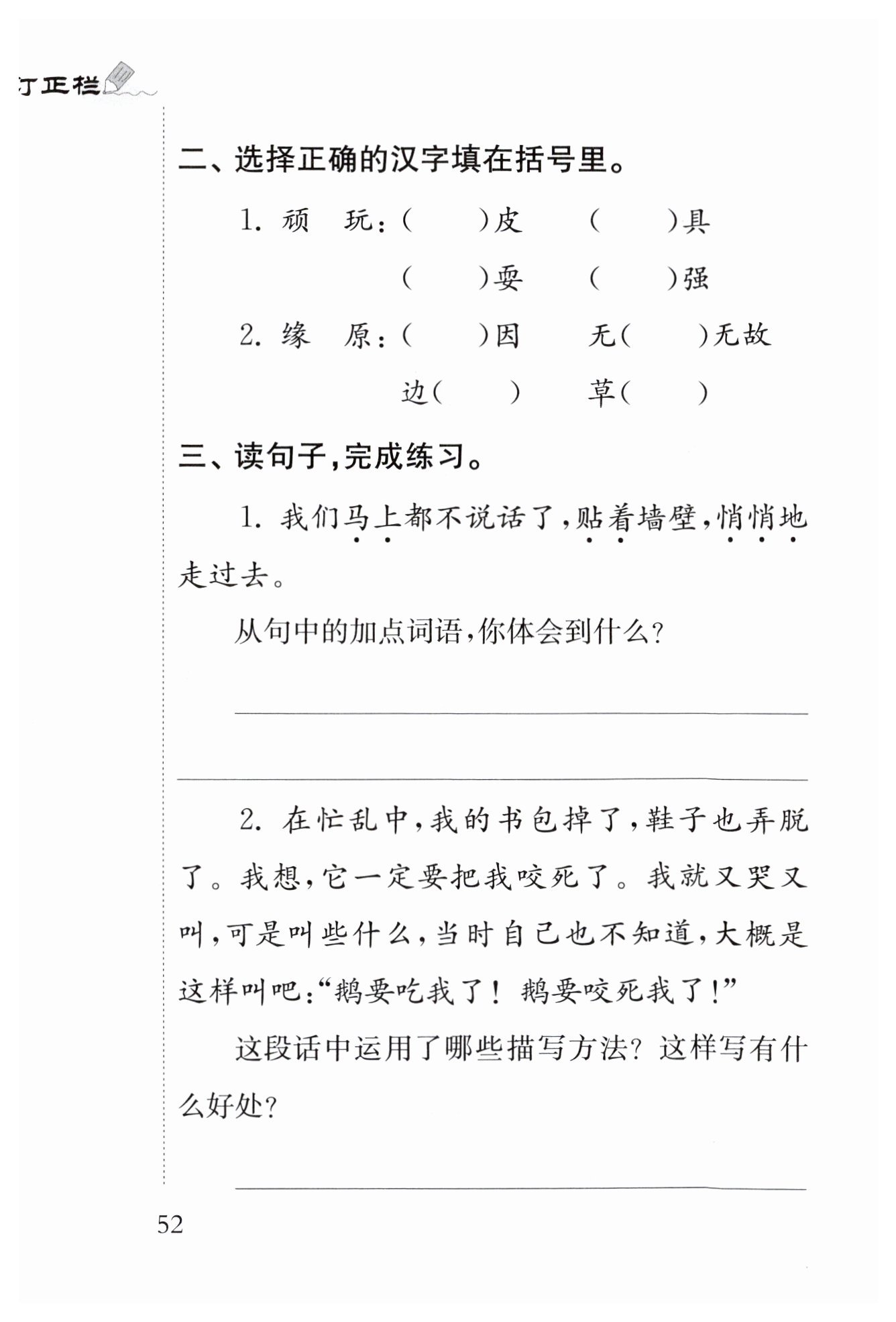 了鵝欺負(fù)“我”時(shí)場(chǎng)面的失控,體現(xiàn)了鵝的不可一世和