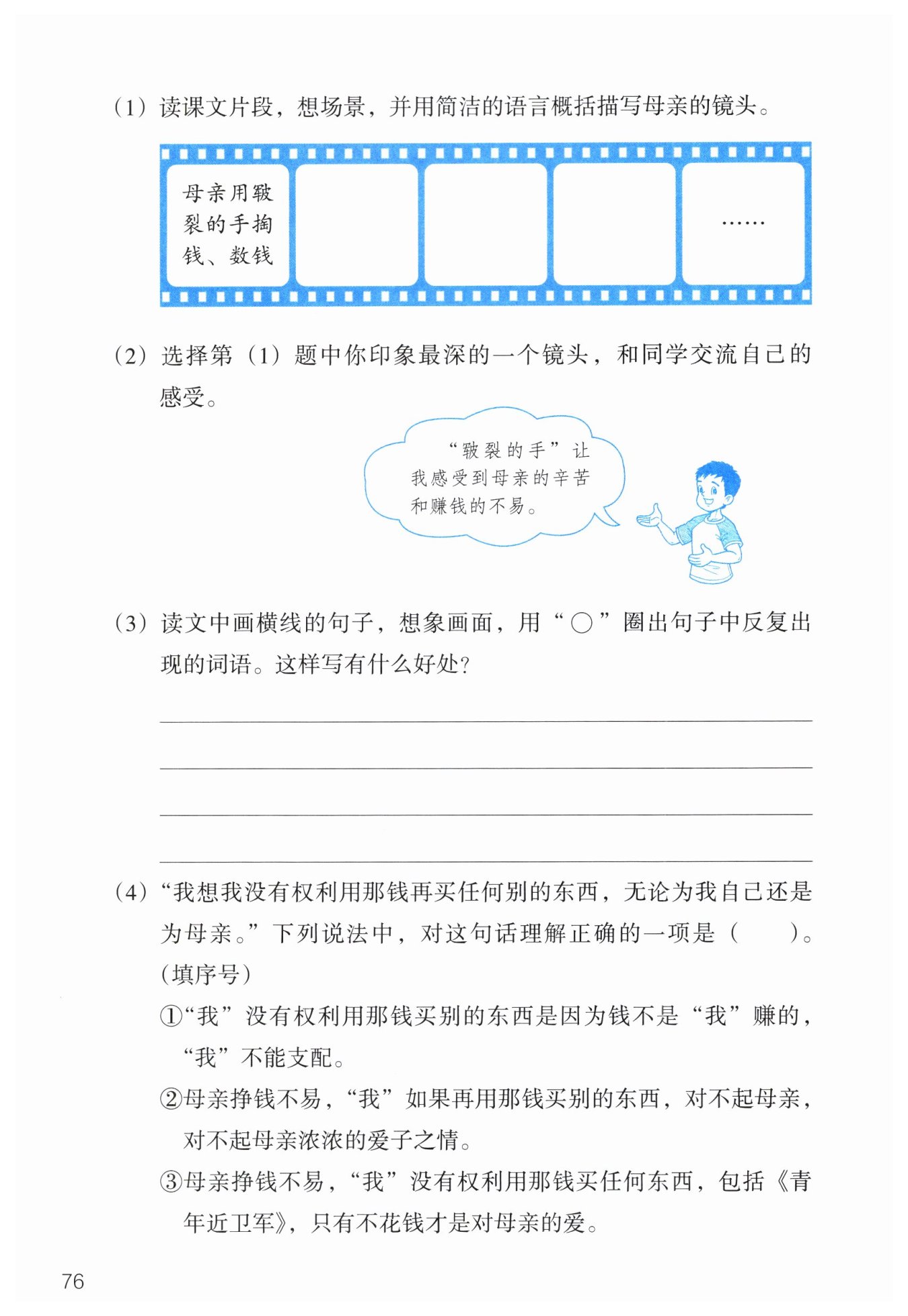 示例:“母親塞給我錢”——體現(xiàn)出母親對“我”濃濃的愛。