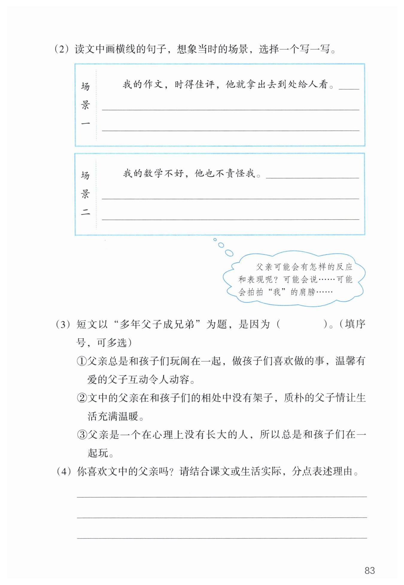 而現(xiàn)在的很多父母,并不會帶著孩子一起去玩;②他尊重孩子,
