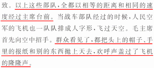 寫了各兵種方隊入場接受檢閱,人們歡呼雀躍