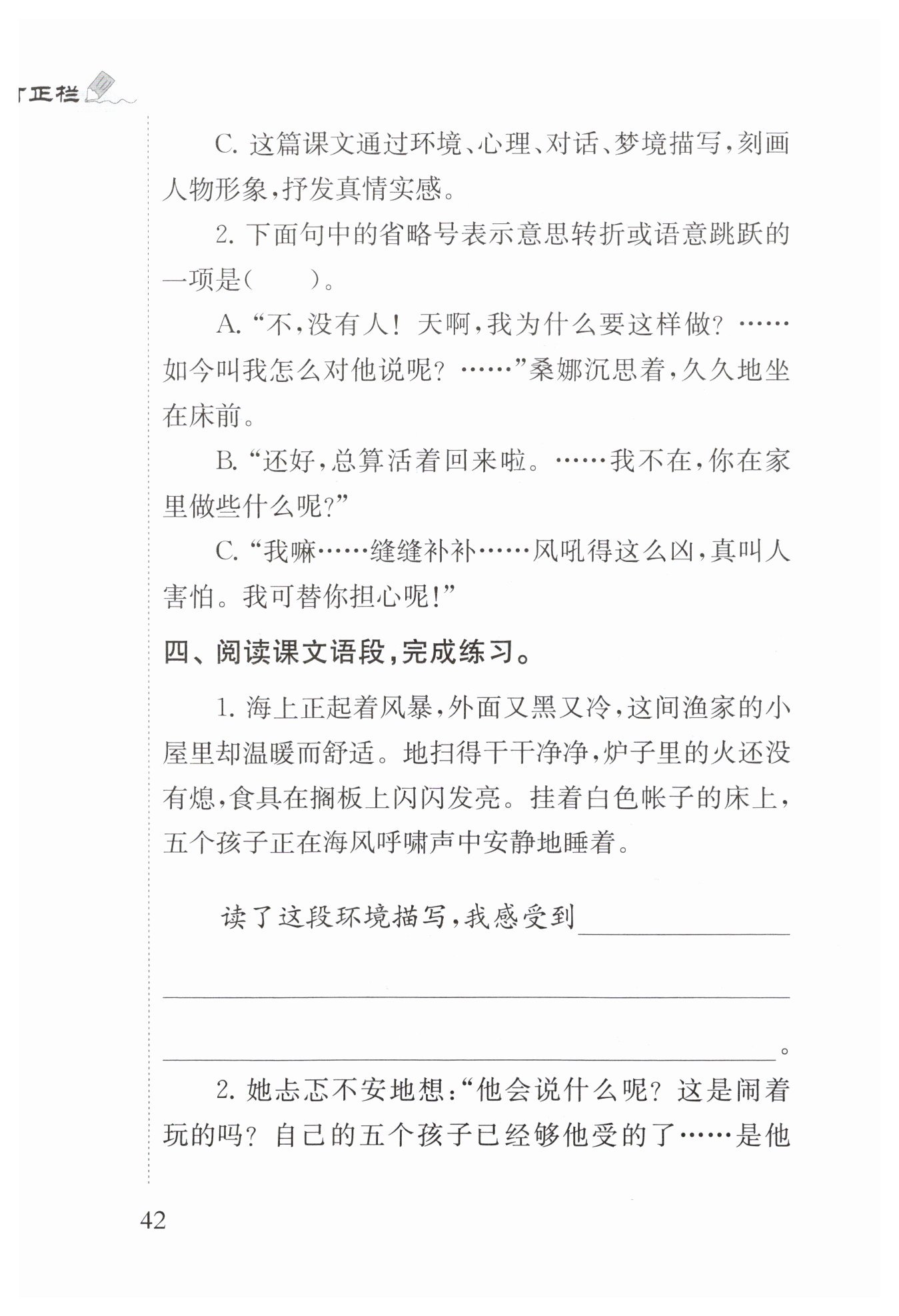 窮,但溫暖而又舒適,說明桑娜很勤勞