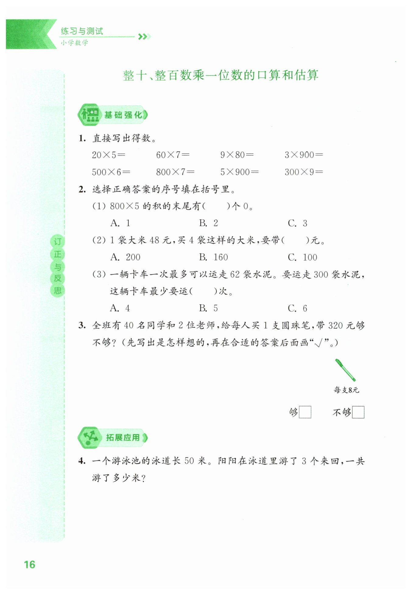解:一個來回是$2$倍的泳道長度,即$2×50 = 100$(米),游了$3$個來回,總共游了$3×100 = 300$(米)。